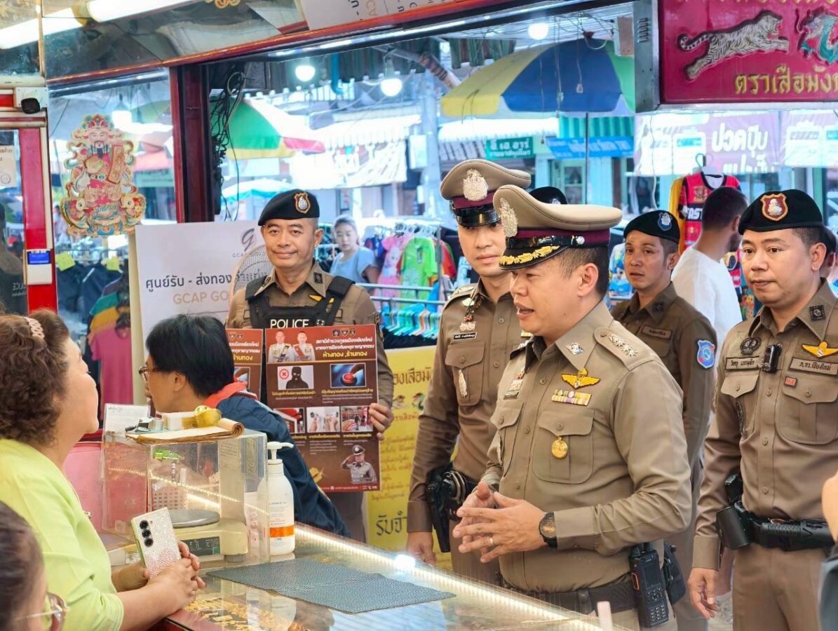 Pol. Col. Pratchaya Thisala, superintendent of Chiang Mai City Police Station, led officers in launching enhanced crime prevention measures targeting gold shops, particularly around Warorot Market—an area busy with tourists and shoppers.