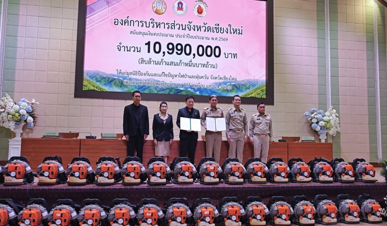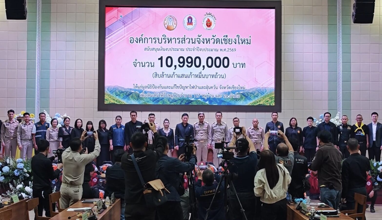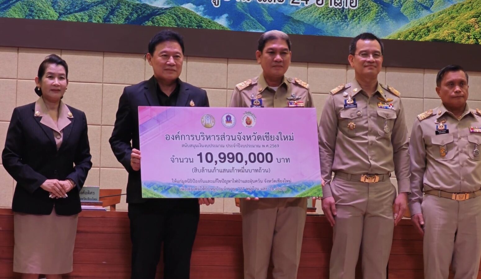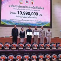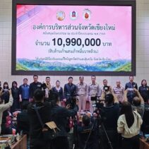 Chiang Mai’s Provincial Administrative Organisation (PAO) handed over 10.99 million baht to the Chiang Mai Wildfire and Haze Prevention and Mitigation Foundation on 9th March, in a ceremony presided over by PAO president Phichai Lertpongadisorn. The funds were received by provincial governor Ratthapol Naradisorn, who also chairs the foundation.