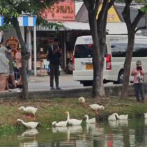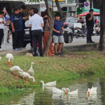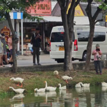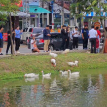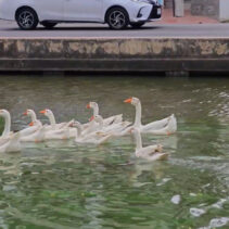 There were pictures shared on social media last night of the flock of geese on the road, but the municipality said that the photos were taken as the geese were being herded back to their pen at night. Apart from the pen by the moat, another pen is currently being build on the water as another housing option for the geese.