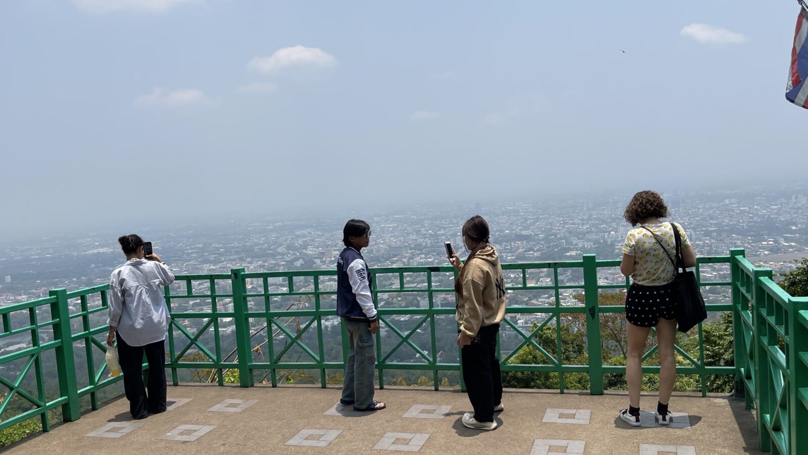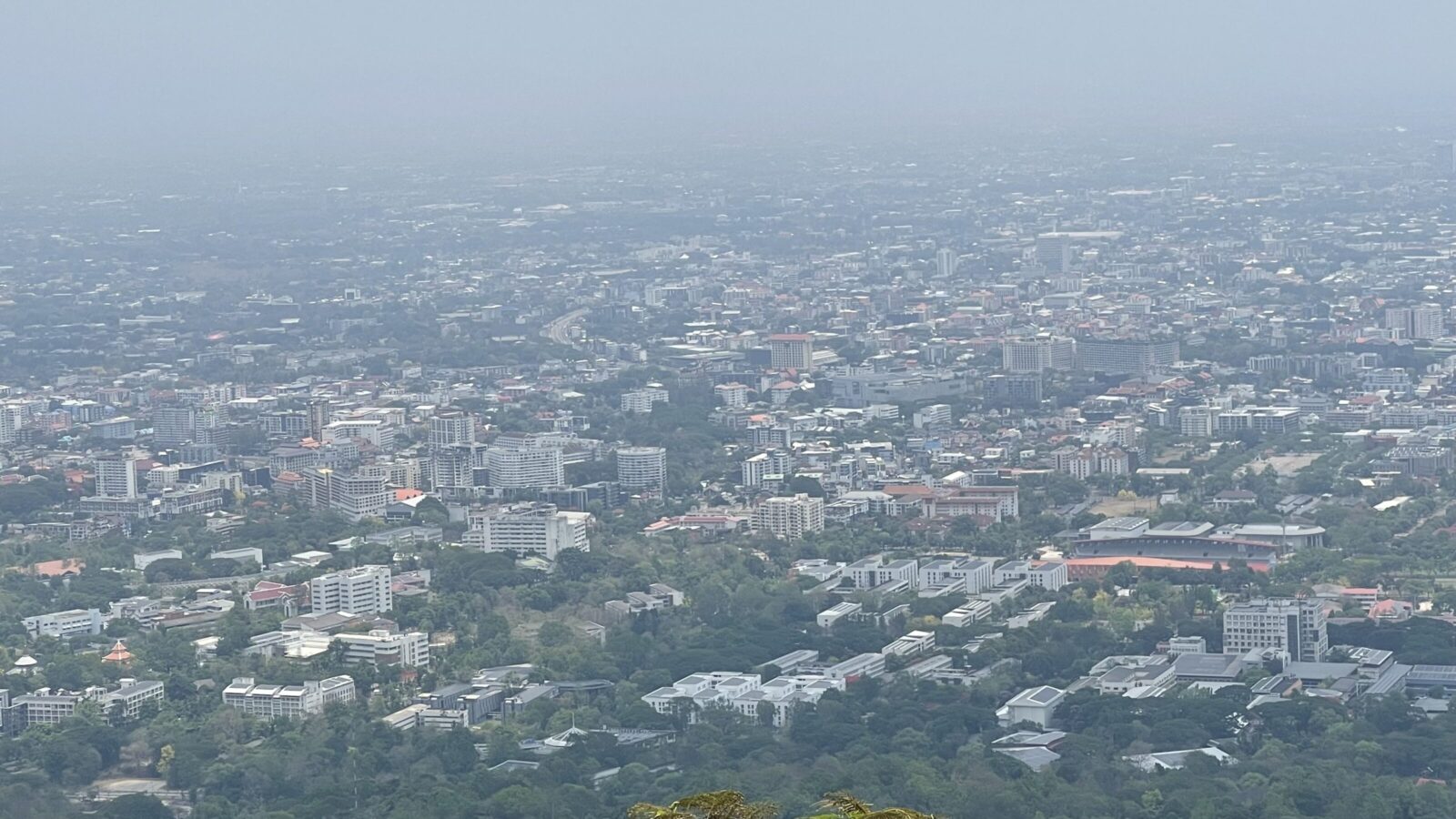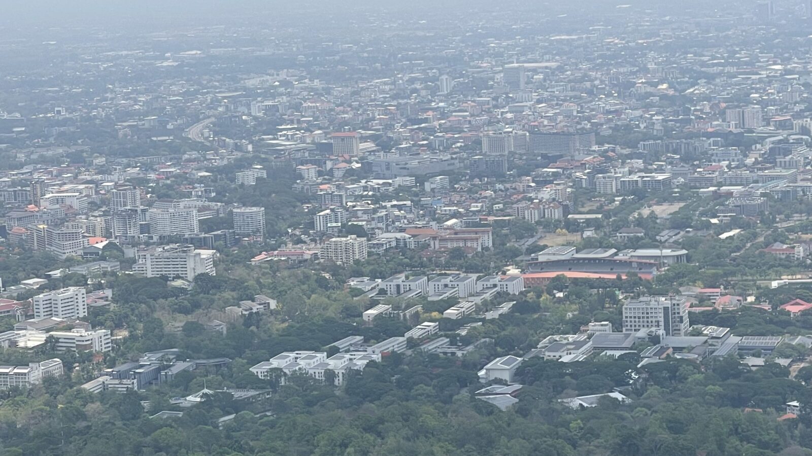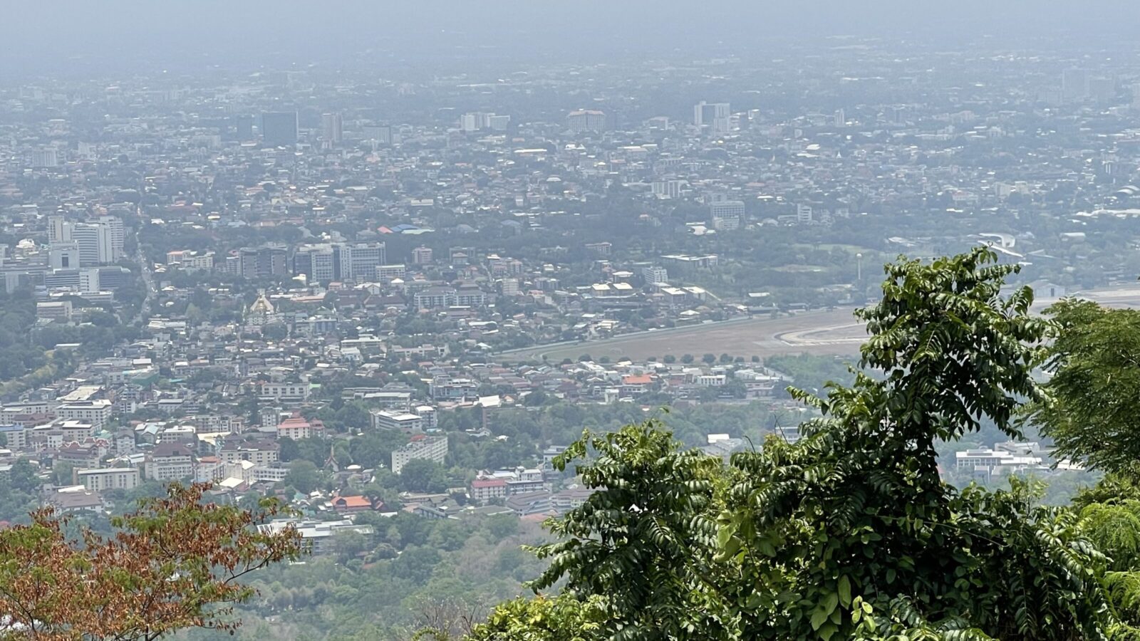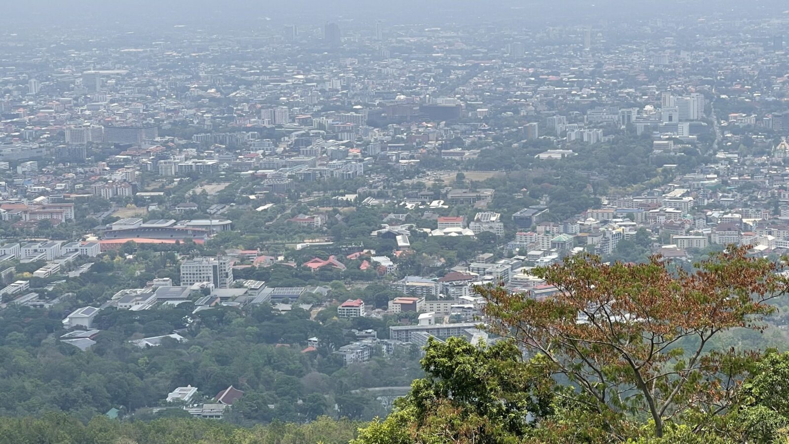 Thunderstorms across several districts over recent days have swept away the air pollution that blanketed the city for much of the past month, and visitors are once more making their way up the Doi Suthep viewpoint to photograph the cityscape laid out below — the clearest views in nearly four weeks.