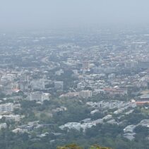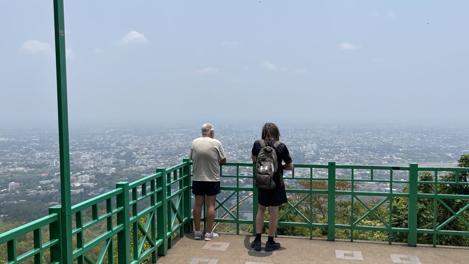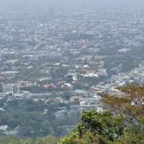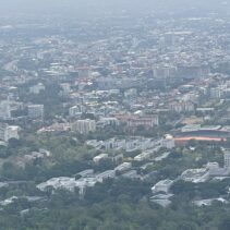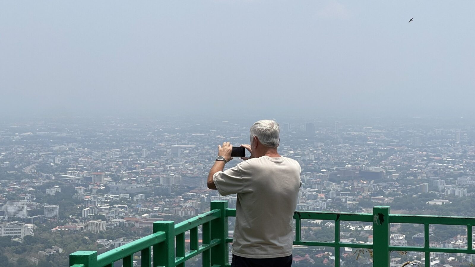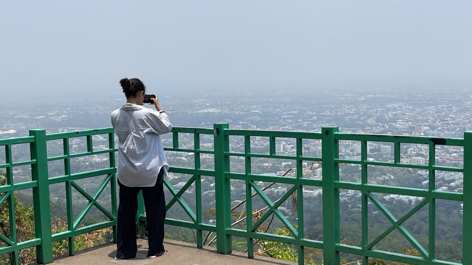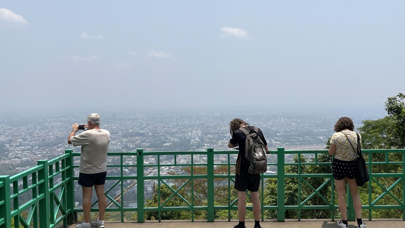 Thunderstorms across several districts over recent days have swept away the air pollution that blanketed the city for much of the past month, and visitors are once more making their way up the Doi Suthep viewpoint to photograph the cityscape laid out below — the clearest views in nearly four weeks.