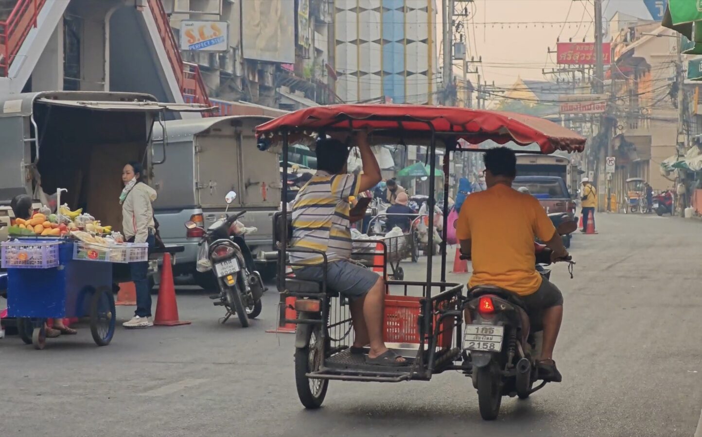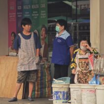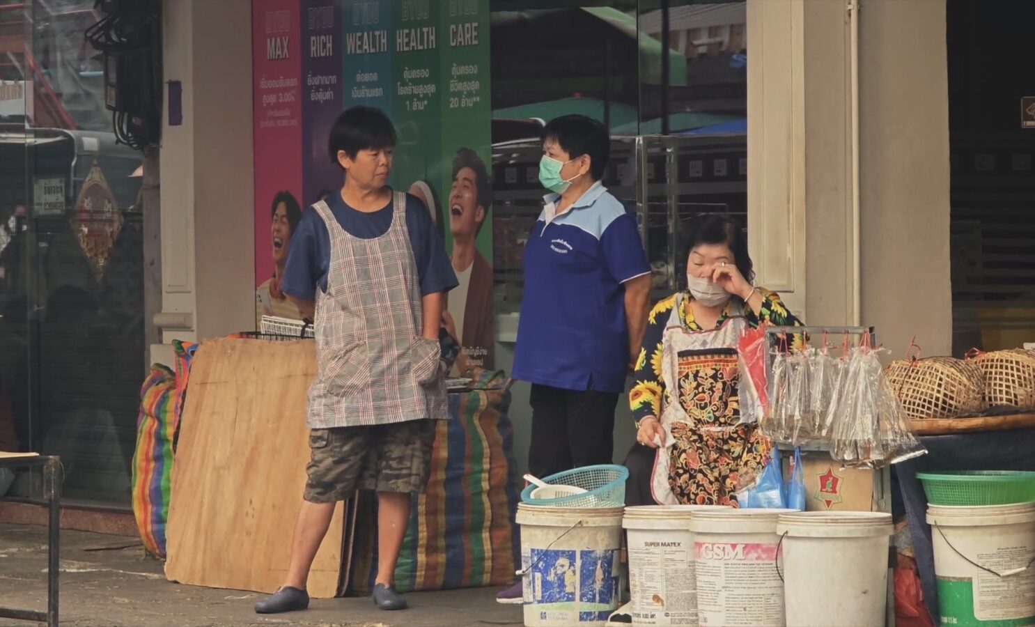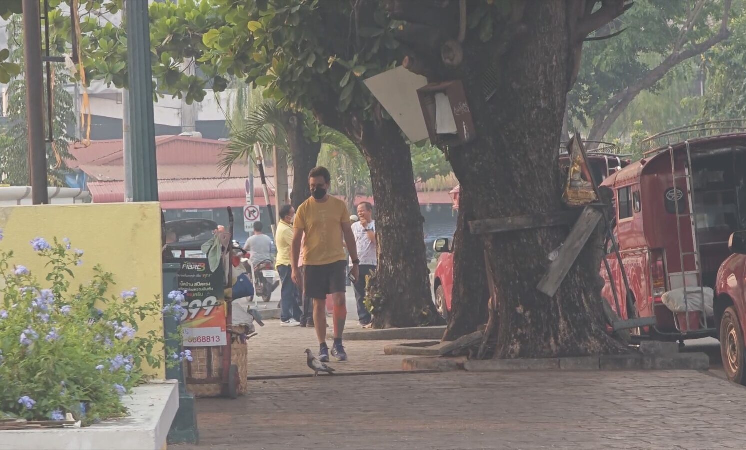 Vendor Saengduan Sanittha said she cannot afford to stop working despite the health risks — her stall rent is fixed regardless of whether she sells. She manages by wearing a mask and drinking water frequently, though she admitted her eyes have already begun to sting. Some fellow vendors have been hit harder, suffering nosebleeds and persistent coughing. On the broader problem of forest burning, she said she doubted it could be easily solved, but expressed solidarity with firefighters working in difficult terrain, and hoped the burning season would end soon.