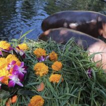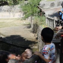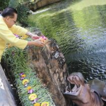 For only 99 baht you can give a krathong made from carrots, pumpkins, bananas and grass to cute pudgy hippos.