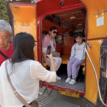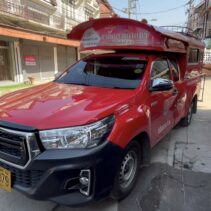 As yet there is just one, the brainchild of this young songtaew driver turned engineer, who says his songtaew cost 1.2 million baht to purchase and modify. He insists on still charging the standard 30 baht per person, but admits that he is getting most of his clients from China, finding him in We Chat.