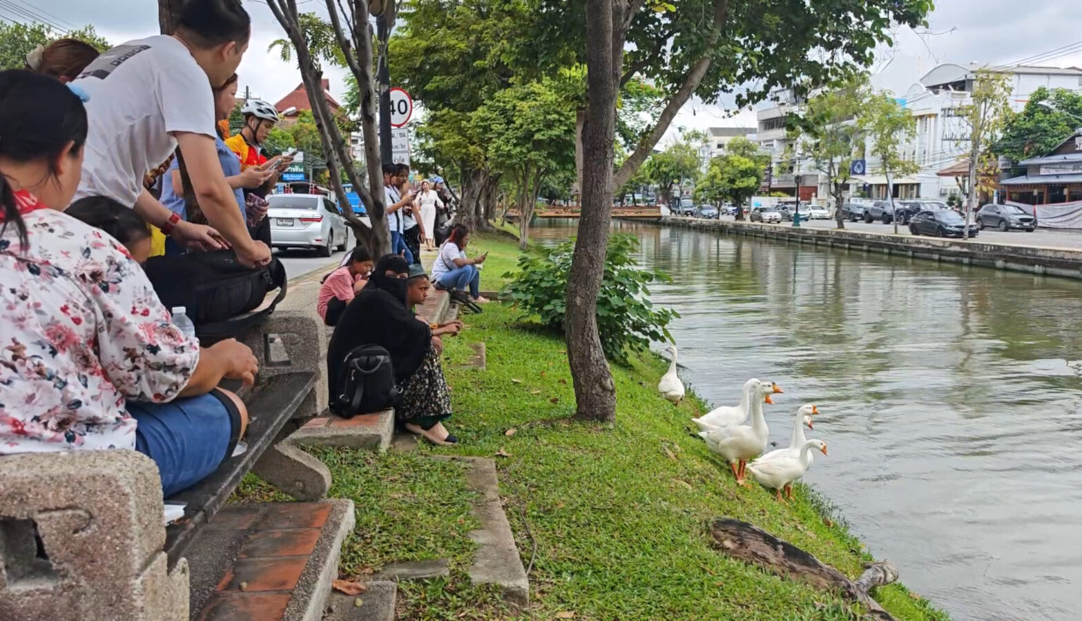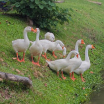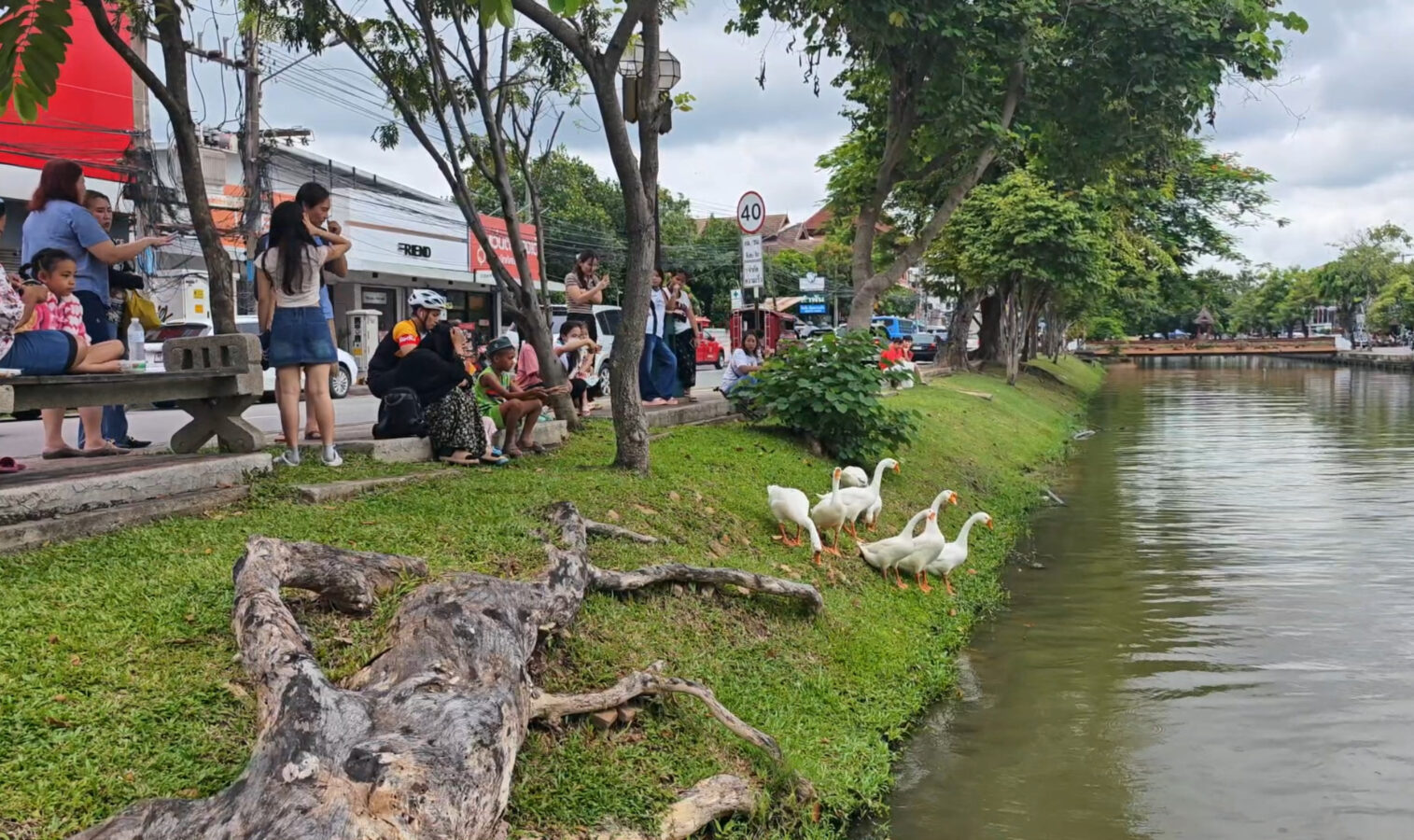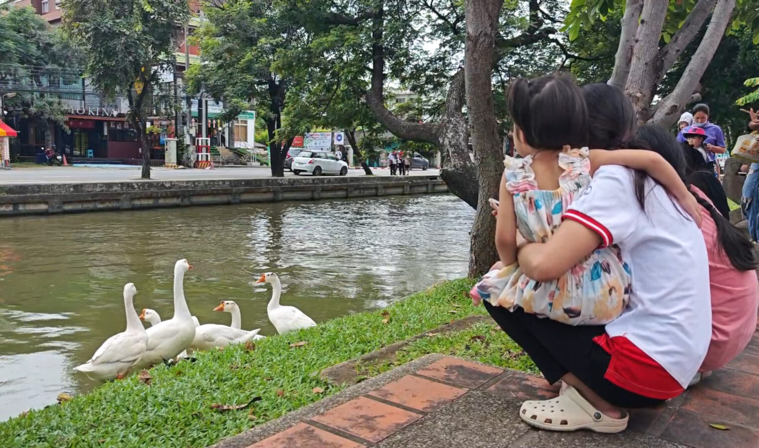 Day three is almost over and the ten geese released into the moat three days ago continue to draw big love from the public. Whether or not they are being effective in cleaning up the water weeds and improving water quality of the moat appears to be irrelevant as tourists and locals flock to visit and take photographs of the geese.