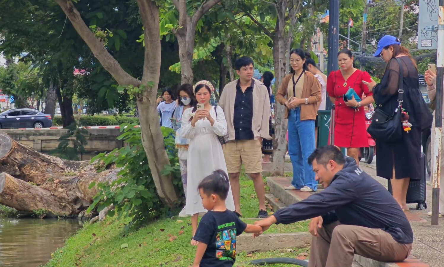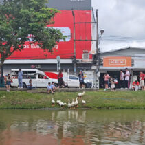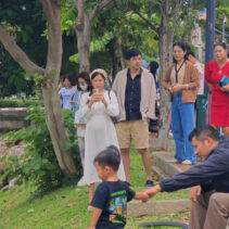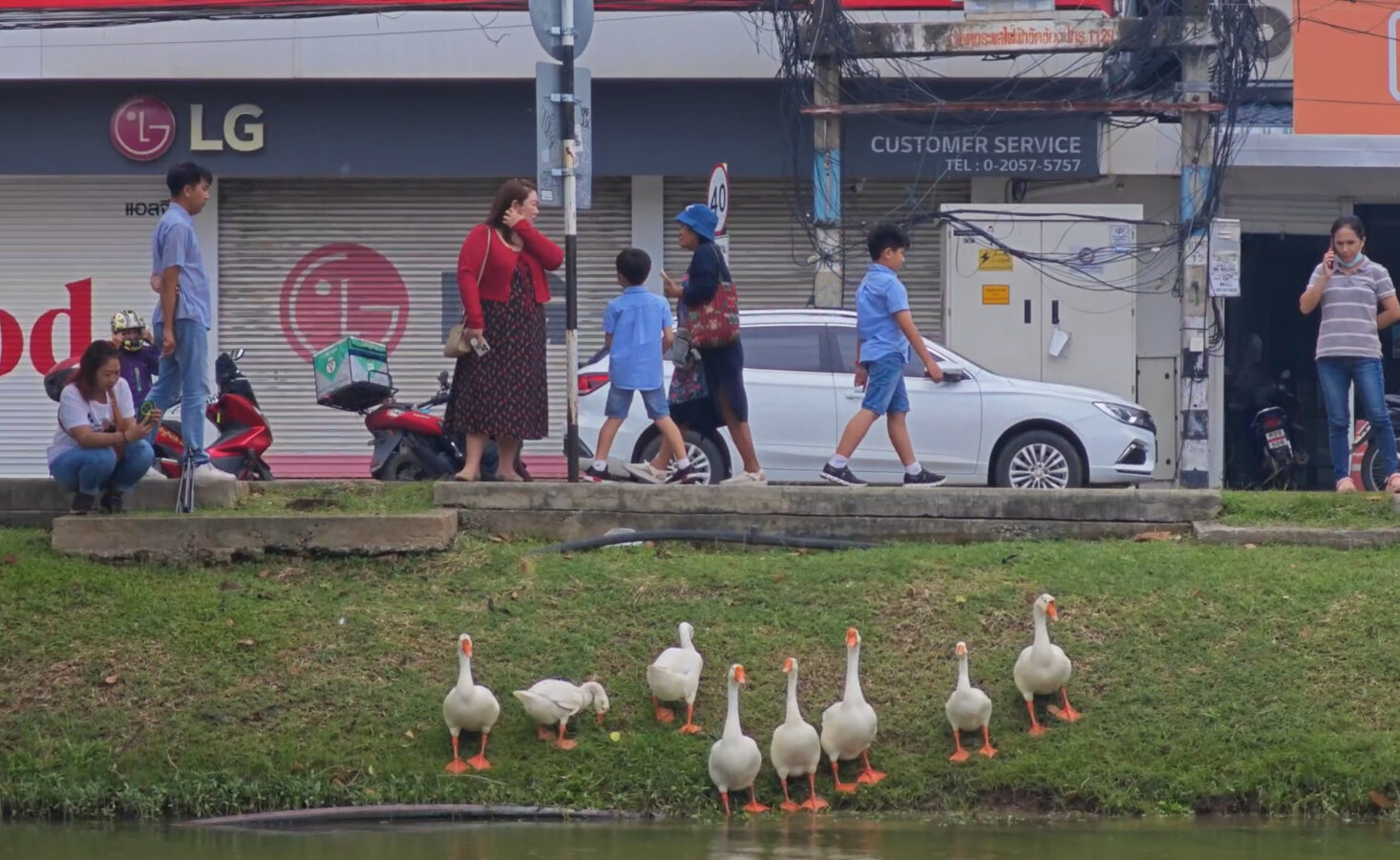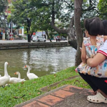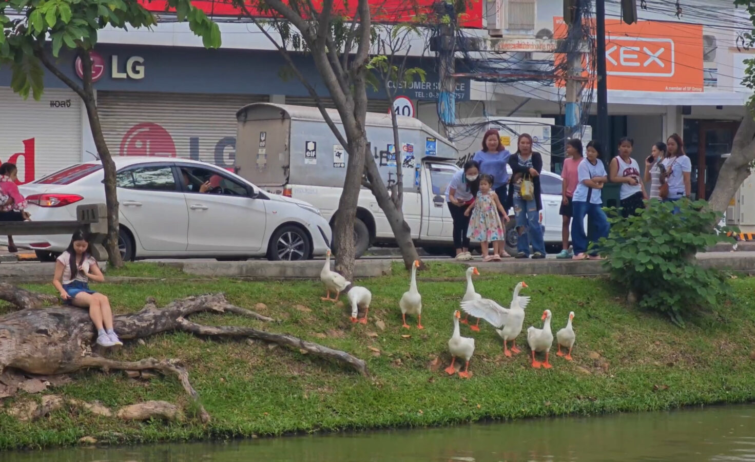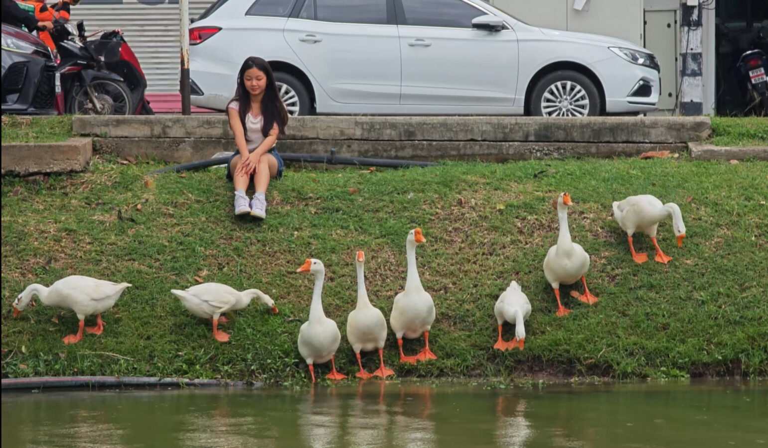 Day three is almost over and the ten geese released into the moat three days ago continue to draw big love from the public. Whether or not they are being effective in cleaning up the water weeds and improving water quality of the moat appears to be irrelevant as tourists and locals flock to visit and take photographs of the geese.