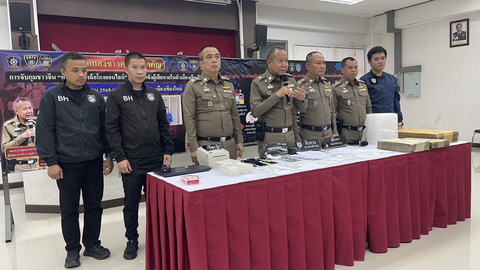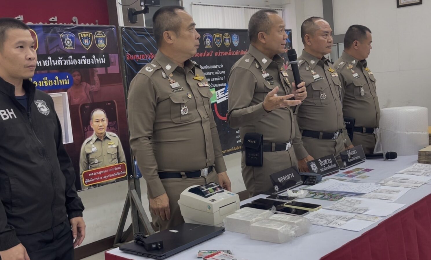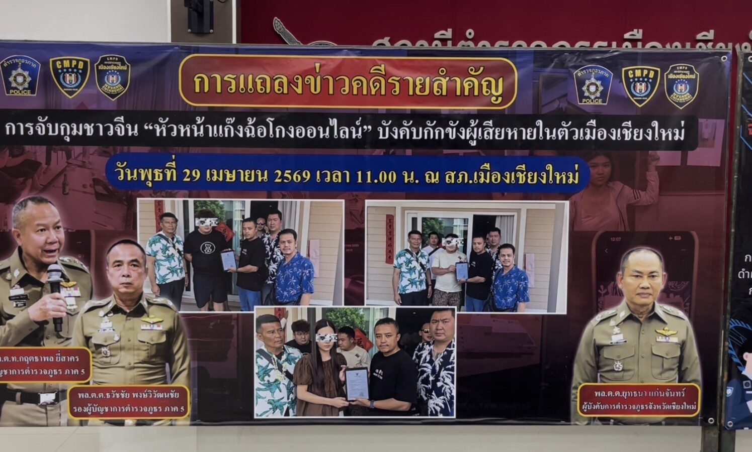 The arrests were announced on the 29th at a press conference led by Region 5 Police Commander Lt Gen Kritthapon Yeesakorn, alongside deputy commanders and Chiang Mai Provincial Police.