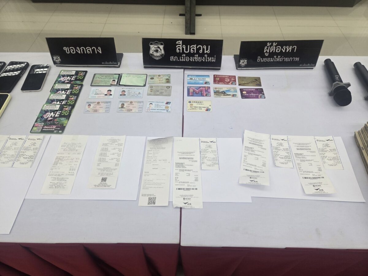 A 20 year old woman from Doi Lo subdistrict reported that on the 28th of March she was recruited for work and directed to a shopping centre in the city, only to be taken to a rented room on the moat. There, her phone was used to receive transfers and she was forced to withdraw 65,000 baht at a mall in Mae Hia and hand the cash over to the Chinese men. Her account was traced to fraud proceeds reported at Pathum Wan Police in Bangkok. Both victims confirmed that Yang Jie and Yang Pengyu were the men who had coerced them.