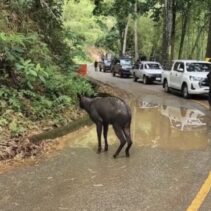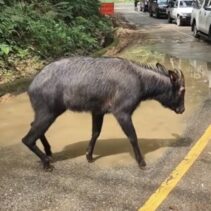 A goral, a wild animal which is in the goat family, was seen along the Chiang Mai-Chiang Dao road 2 days ago.