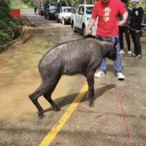 Passersby eventually managed to constrain it and take it to a the local wildlife sanctuary where it is being treated.