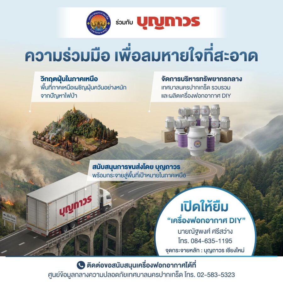 Pak Kret Municipality in Nonthaburi has partnered with Boonthavorn Chiang Mai to assemble and distribute DIY air purifiers to medical facilities and vulnerable groups across the north — including the elderly, young children and bedridden patients — on a loan basis, with units to be returned once air quality returns to normal levels.