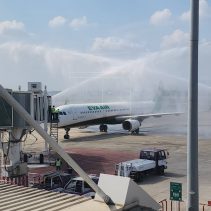 Ms. Angela Hsu, Office Chief of EVA Airways Corporation Chiang Mai Office and the Director of the Tourism Authority of Thailand Chiang Mai Office, Ms. Suladda Sarutilavan, Ms. Cindy Chen, The Director of Taiwan Tourism Bureau Bangkok Office, Ms. Kunchaka Suvanich, The President of Northern Thai Travel Agents Association, and representative of Chiang Mai International Airport, are honored to welcome EVA Air’s passengers by providing souvenirs and taking photos together for both inbound and outbound passengers to welcome the new year of tourism of 2023. Chiang Mai International Airport also provides the water salute to welcome the resumption of Taipei-Chiang Mai-Taipei flights after flight cancellations due to covid-19 pandemic. 2023 is a year in which EVA Air is ready to serve all tourists who visit Chiang Mai for both traveling and doing business in order to support tourism to be active again.
