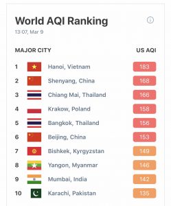CityNews – 9th March 2020, after a couple of days of fairly decent AQI levels, Chiang Mai has the ignominity of being back in the news for being the third most polluted city in the world.