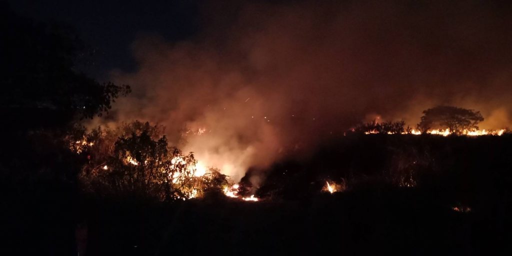 Yesterday, 8th March, the municipality fire department was called to a piece of land behind Amway off the first ring road where fire was ravaging an empty piece of land. It took three hours to contain the fire.