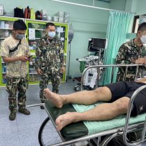 Five firefighters were patrolling the forest areas between Chai Prakarn and Ban Arunothai Districts when one man stepped on a yet unidentified explosive device. One man was injured in the face and knee, and the other has injured his year drum.