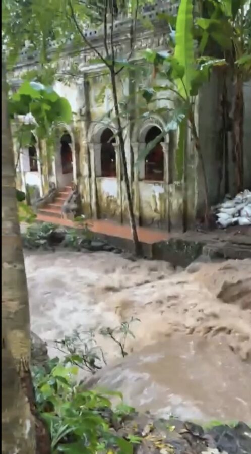 The Royal Irrigation Department reported heavy rainfall of 32 millimeters on Doi Suthep between 2 pm and 4 pm on September 22, 2025, which caused flash floods to flow down from the mountain into Wat Pha Lat. The sudden surge of water overflowed through natural waterways, passing the temple.