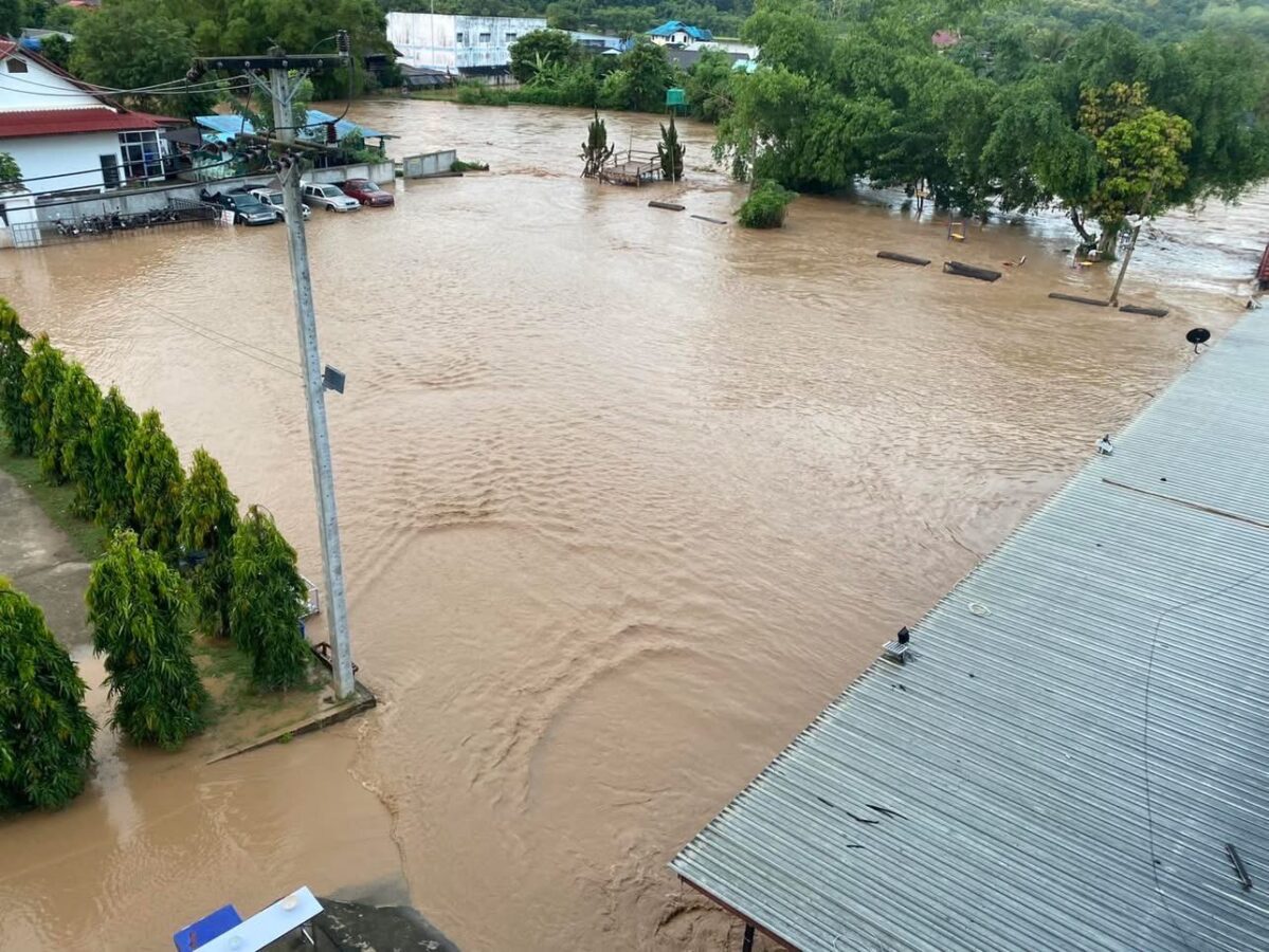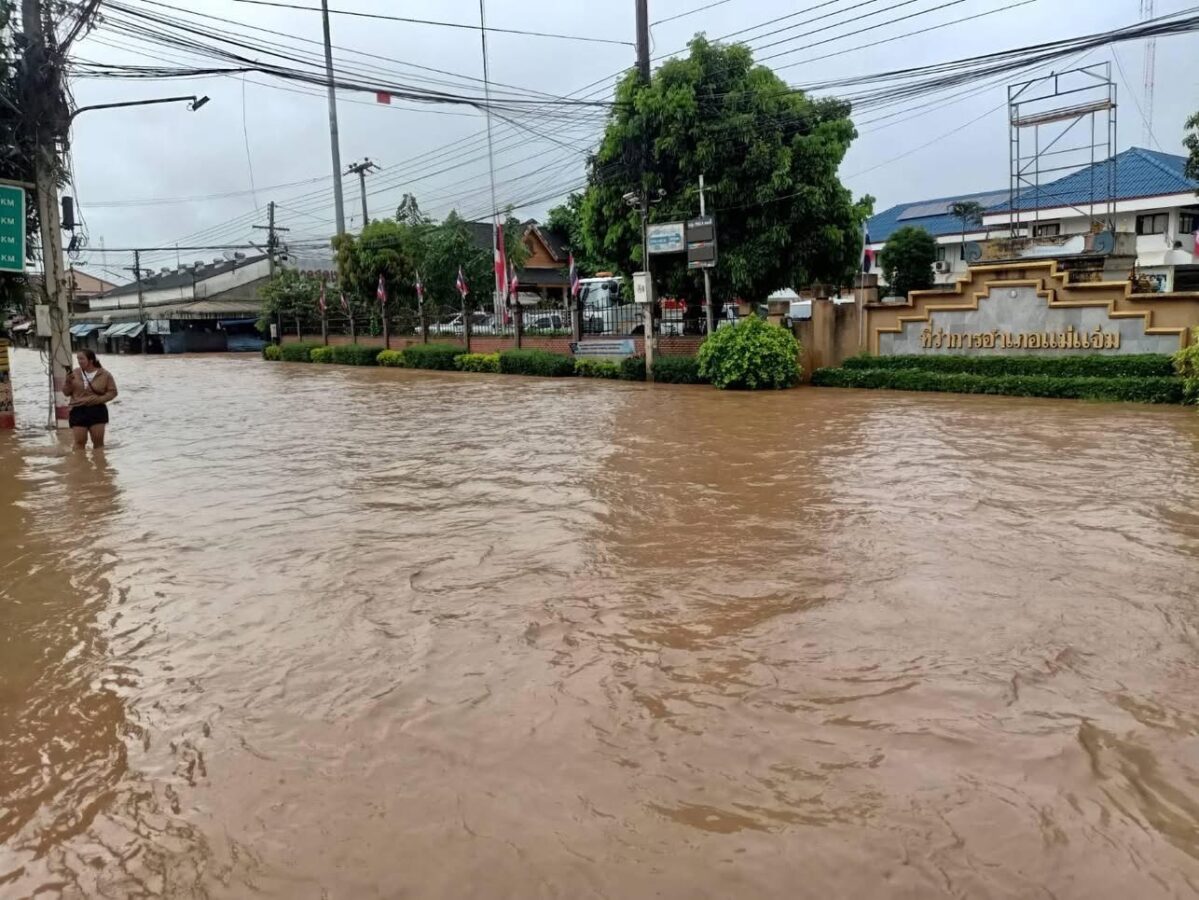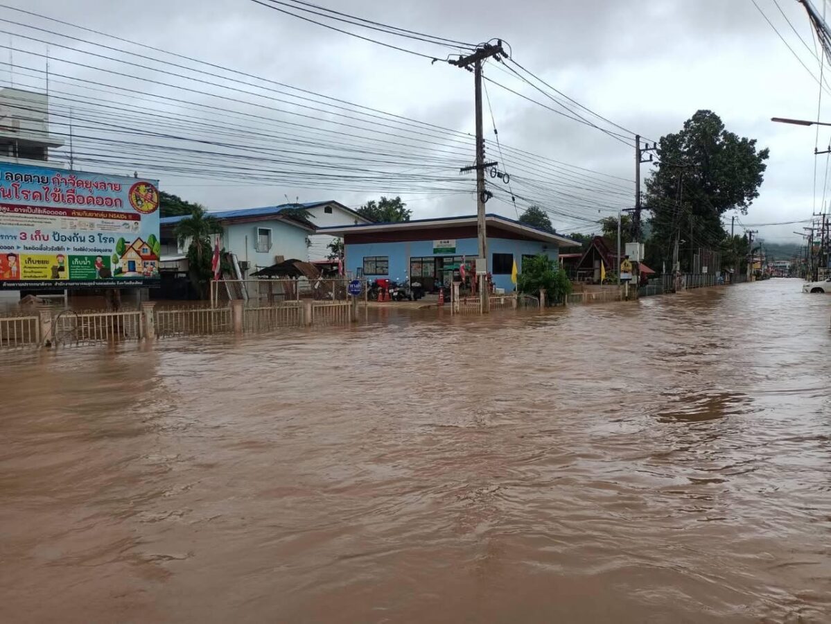 The flooding situation in Mae Chaem remains critical, particularly in Chang Khoeng Subdistrict and around the Mae Chaem District Office. Although water levels had receded yesterday, heavy rain in Galyani Vadhana District caused them to rise again late last night.