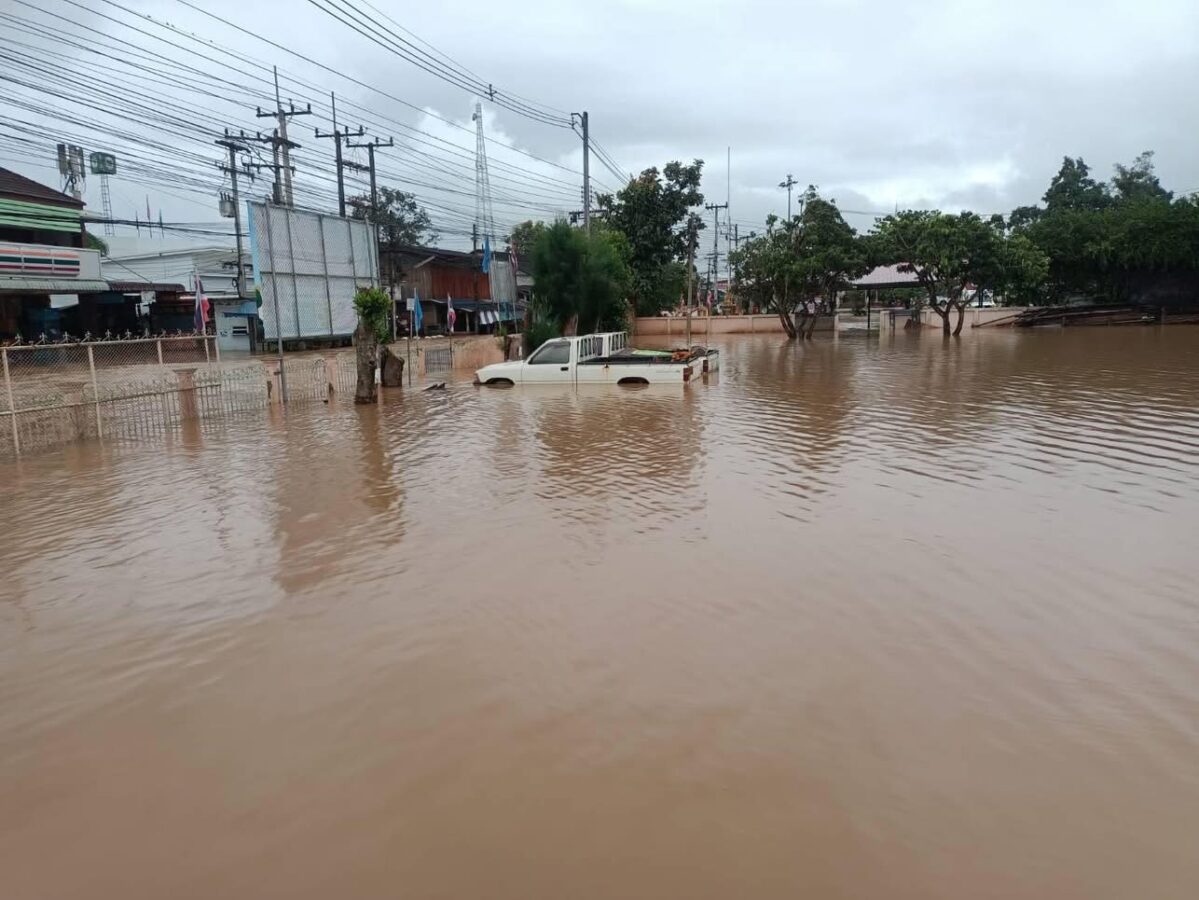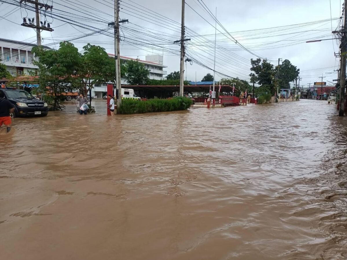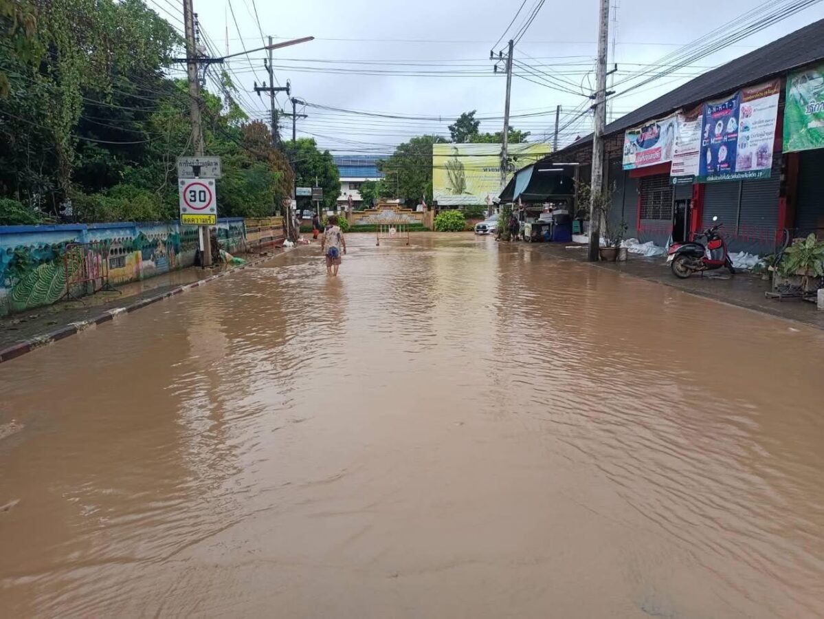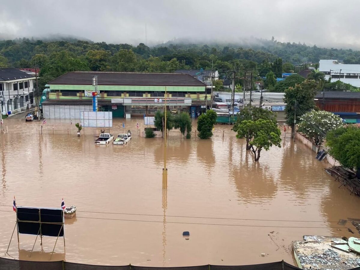 The flooding situation in Mae Chaem remains critical, particularly in Chang Khoeng Subdistrict and around the Mae Chaem District Office. Although water levels had receded yesterday, heavy rain in Galyani Vadhana District caused them to rise again late last night.
