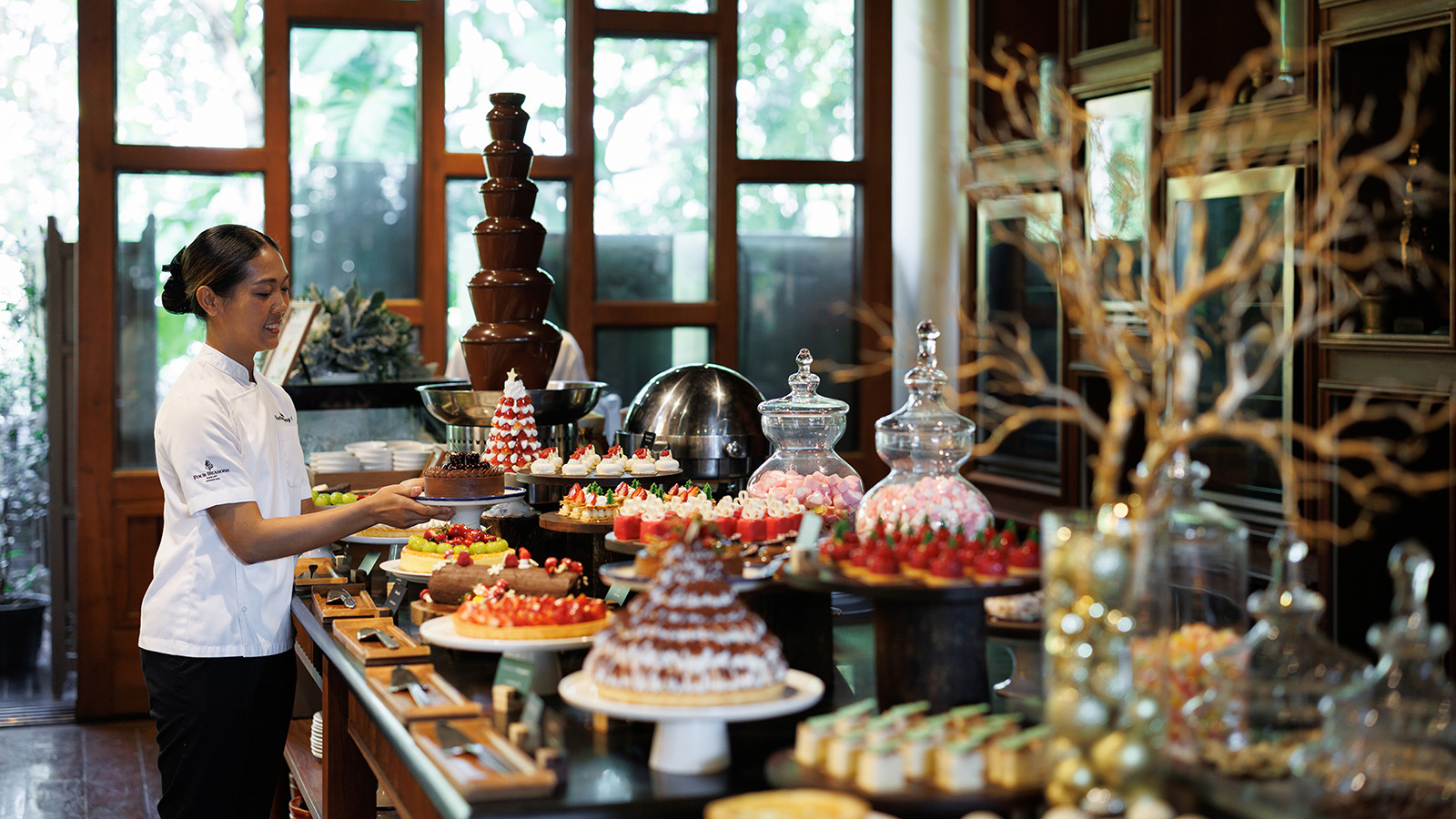 Dessert is a true showstopper. Executive Pastry Chef Yanisa Wiangnon unveils a dazzling display of sweet creations, including signature favourites such as Khao Mak Cheesecake and seasonally inspired pastries. A live dessert station adds an element of theatre, while her made-to-order tiramisu service delivers a personalised flourish that guests can savour to the very last bite. “Feast is about interaction, artistry, and joy,” shares Yanisa. “Every dessert is crafted to delight the senses.”