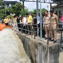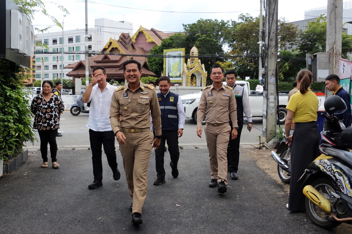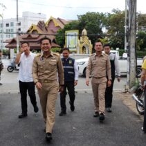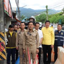 Chiang Mai Governor Thossaphon Phuean-Udom, along with provincial and municipal officials, inspected flood prevention measures in the Chang Khian community around noon today.