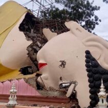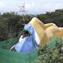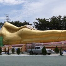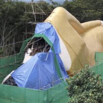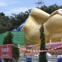 The reclining Buddha from Wat Phra That Doi Saket absorbed water from recent heavy rains, say temple officials, also explaining that the head had only been attached for three days at the time of the break. It is estimated that the repairs will take three months. The reclining Buddha is 59.99 metres long and only had its official completion ceremony earlier this month.