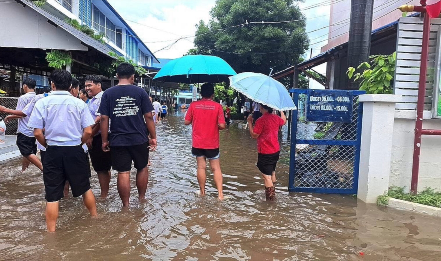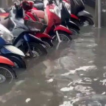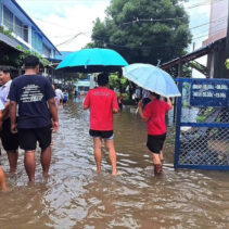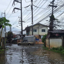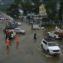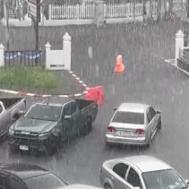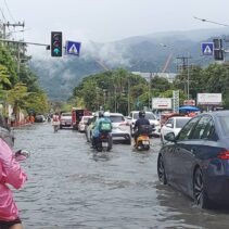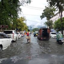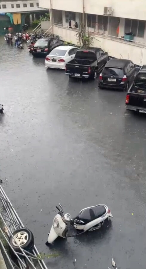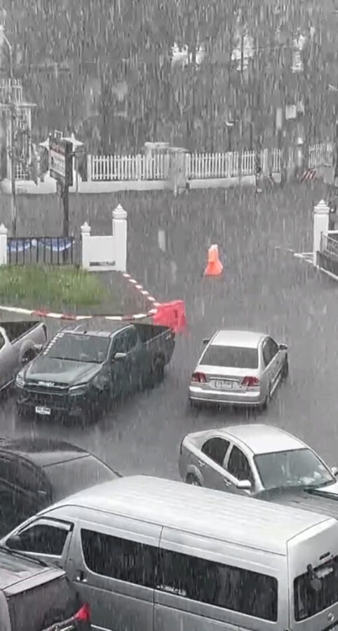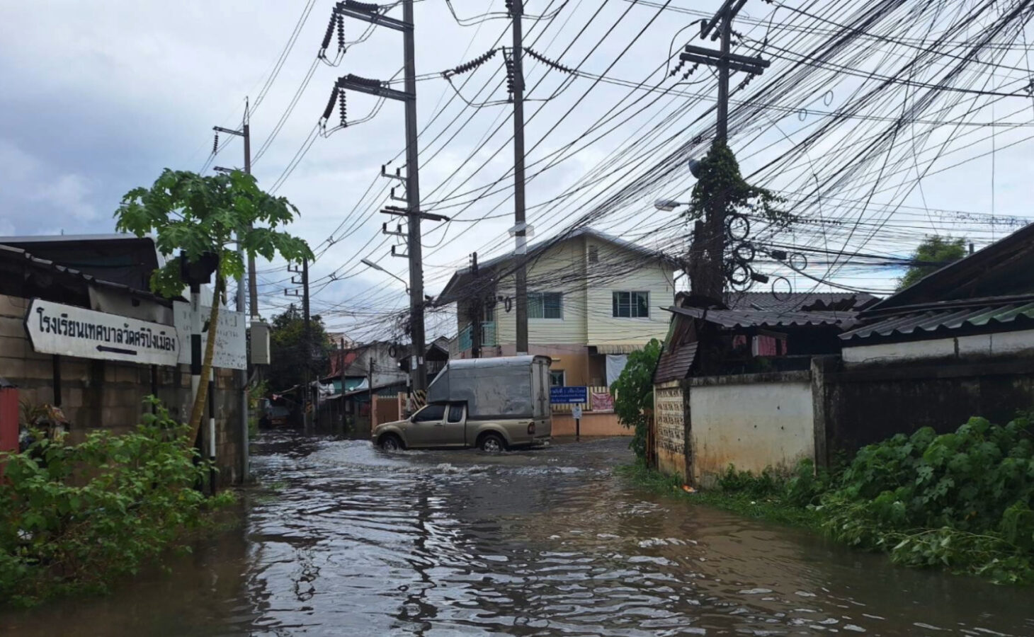 Heavy rains around noon today so many Chiang Mai roads unable to drain enough eater to prevent temporary floodings.