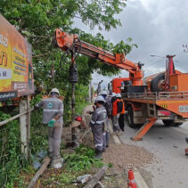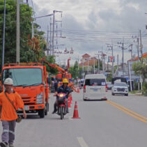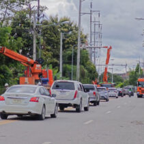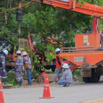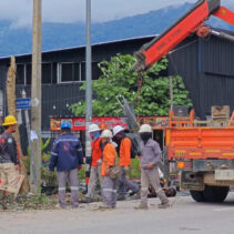 Provincial Electricity Authority officials continue to restore the power system on Nong Ho Road. They are preparing to replace electric poles along the 595-meter route, and the project is expected to take three days to complete. Power has already been restored to all affected households.