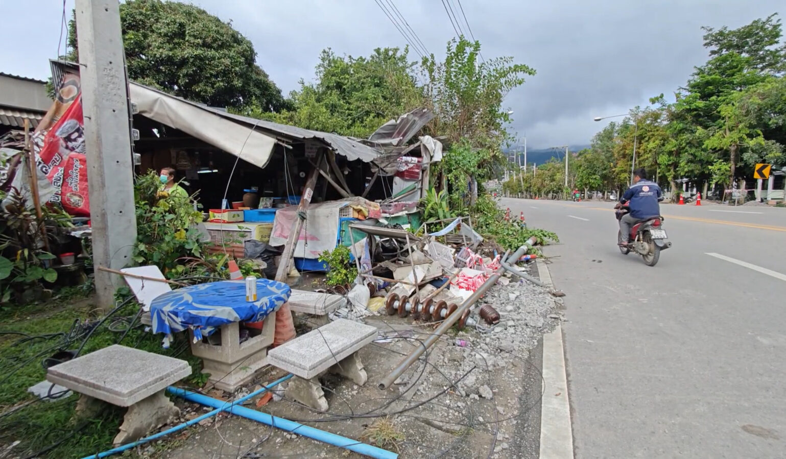 Residents remain concerned about the damage to more than 22 homes and businesses, as the car insurance related to the accident covers only 600,000 baht. They are therefore filing police reports and urging the Electricity Authority or the Chang Phueak Subdistrict Administrative Organization to assist with the repair costs.
