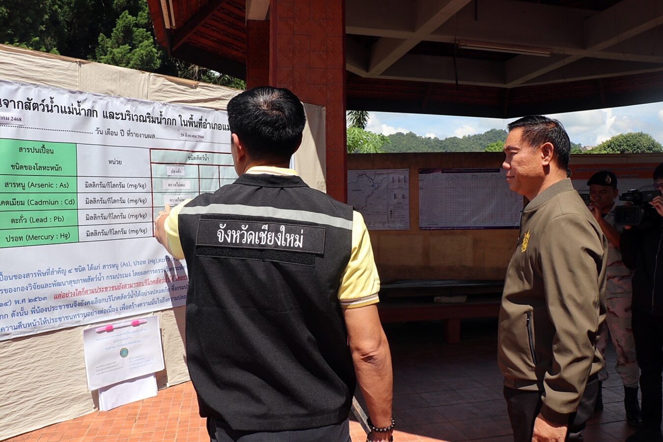 Chiang Mai Governor Thotsapol Phueanudom visited Ban Tha Ton Pier in Mae Ai District to monitor the contamination situation in the Kok River. The latest and 10th random test for heavy metal contamination in aquatic animals, vegetables, and water from the Kok River showed no presence of arsenic, cadmium, or lead. Mercury was detected at a low level of 0.12, which falls within the safety standard and is considered safe.