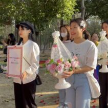 As rose petals paved their way, thrown by their supporters, the couples were greeted by a senior member of the District Secretary, Head of Administrative Administration Group, Chiang Mai, who welcomed them to the office, offering them all blessings in love. He told the group that he wished them all great love and happiness, and that the office would be happy to provide them with legal marriage services once the law of the land allowed.