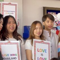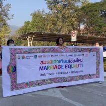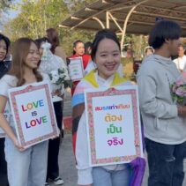 To celebrate Valentine’s Day, twelve LGBTQ couples paraded in the traditional ‘Kan mak’ custom to the Chiang Mai District Office where they requested authorities to give equal rights under the law to LGBTQ couples.