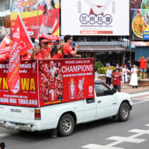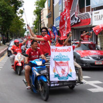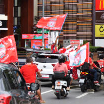 Having won England’s top division for the 20th time in history, Liverpool FC’s Kopites in Chiang Mai were seen waving flags and heard singing, “You will never walk alone” in a cheerful convoy around the moat. Congrats