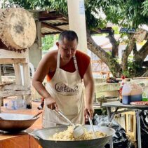 Today’s menu was stir-fried cabbage, served with hot steamed rice and clean drinking water.