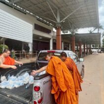 On the 1st August at Wat Thong Noi in Mae On District, Phra Maha Adisorn Woramongkalo, the abbot, led a group of monks and novice monks at the temple in organising a monastic kitchen activity. Food was prepared and boxed before being distributed to disaster-affected people in the area, as well as to offer to other temples impacted by recent crises and hardships.
