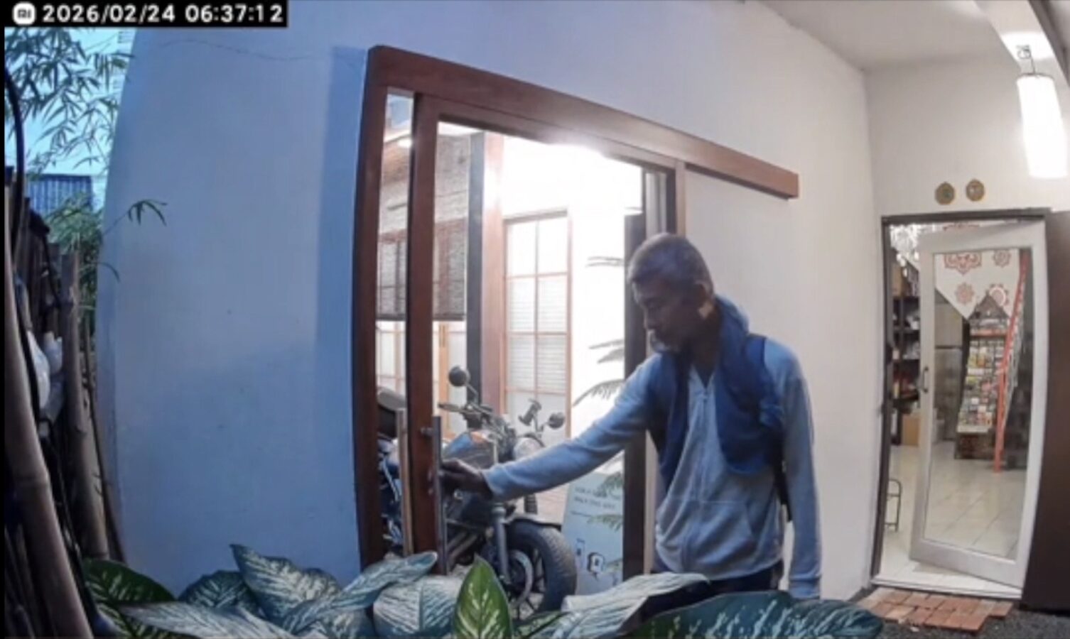 CCTV showed the man, believed to be around 50 years old, carrying a backpack and bag, walking around the property at around 9pm on 23rd February. He returned at about 6am the next day and entered the house, which had been left unlocked, before later making himself at home inside.