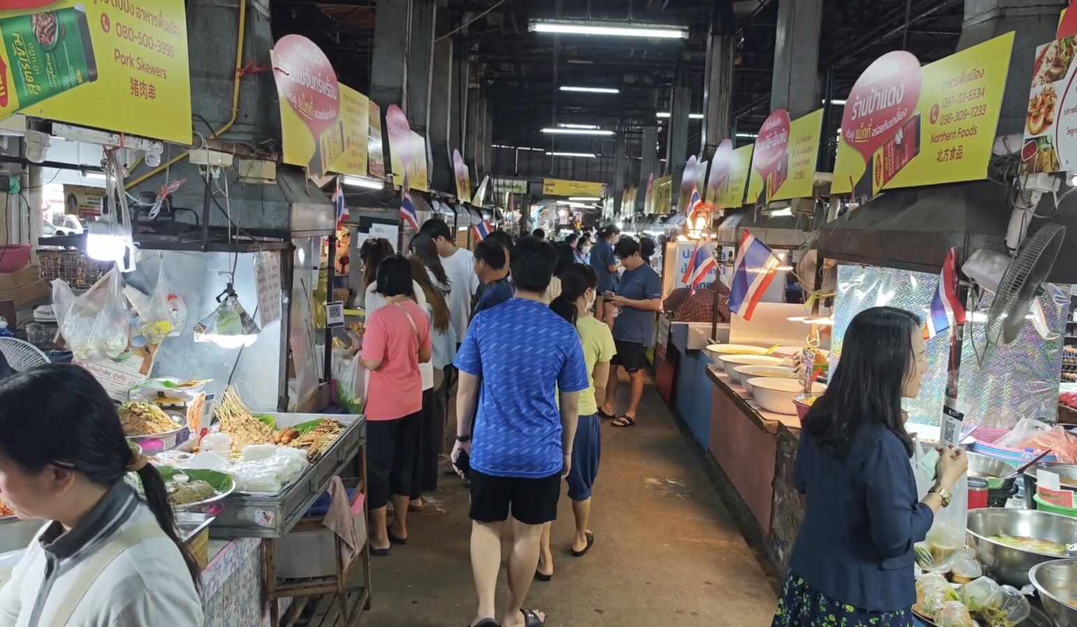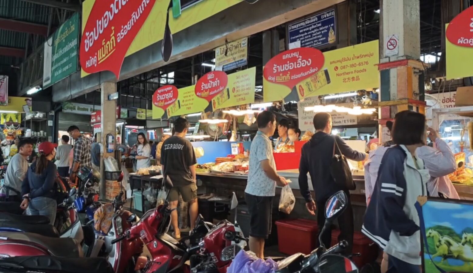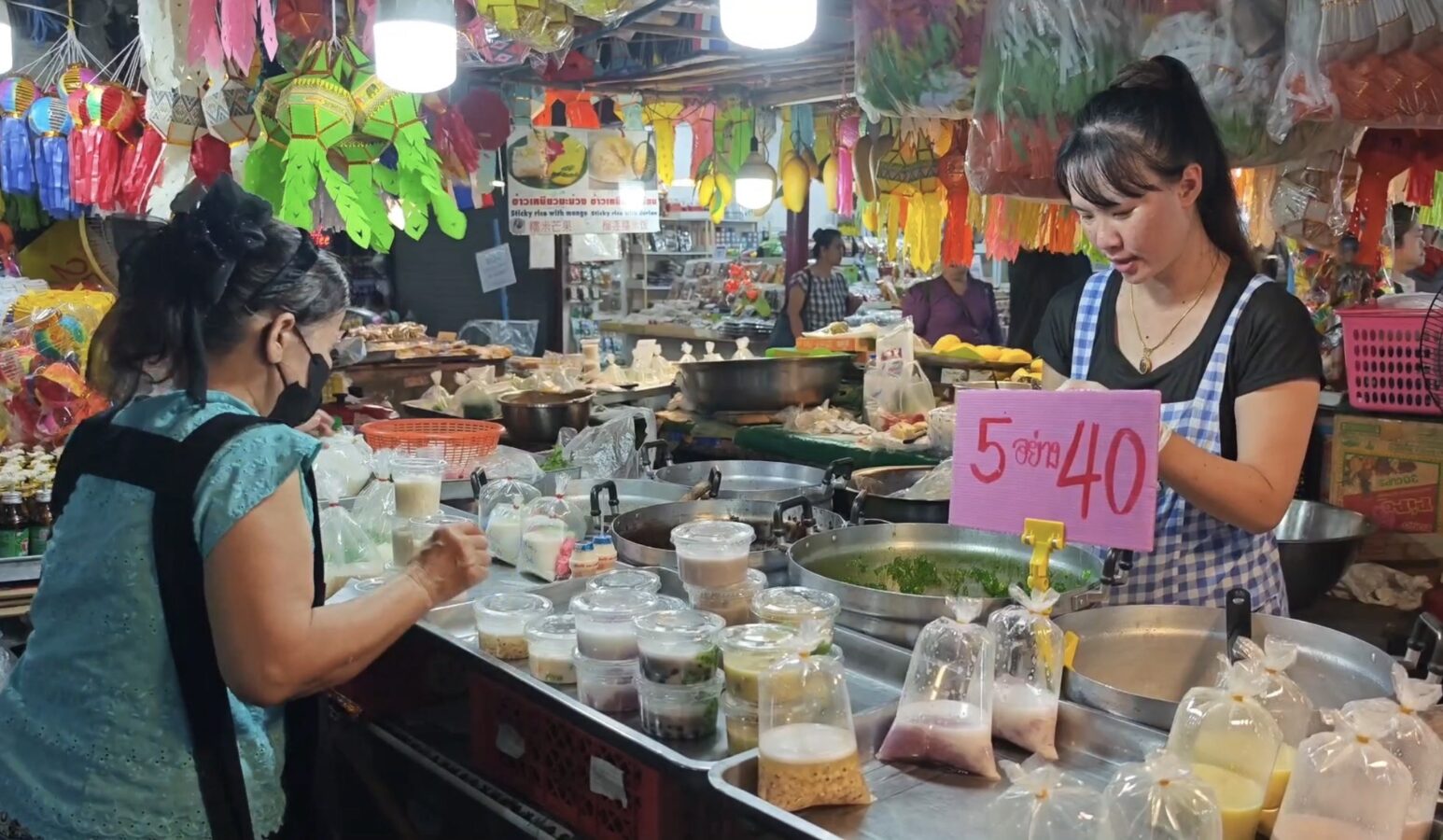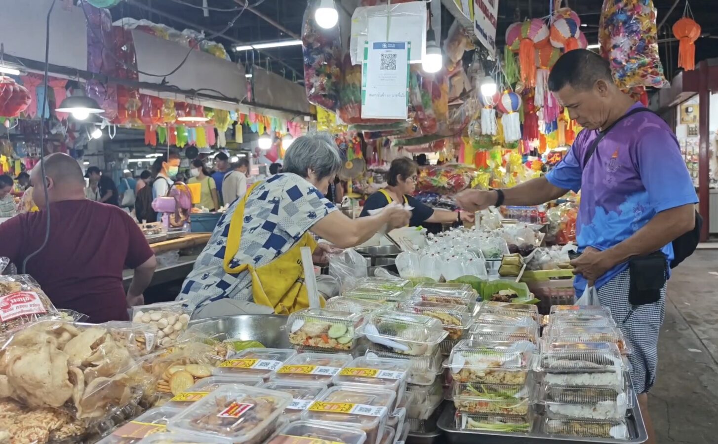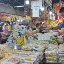 The Chiang Mai Gate Market is bustling as vendors rush to apply for the government’s Half-Half Plus programme, inputting their details into the application since earlier this morning.