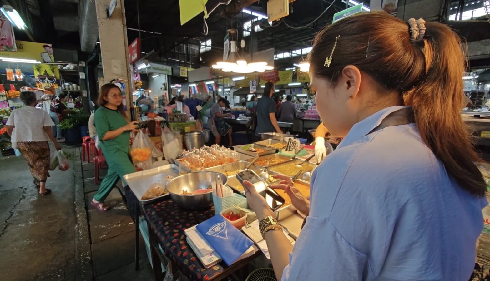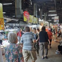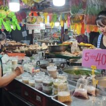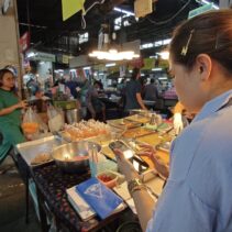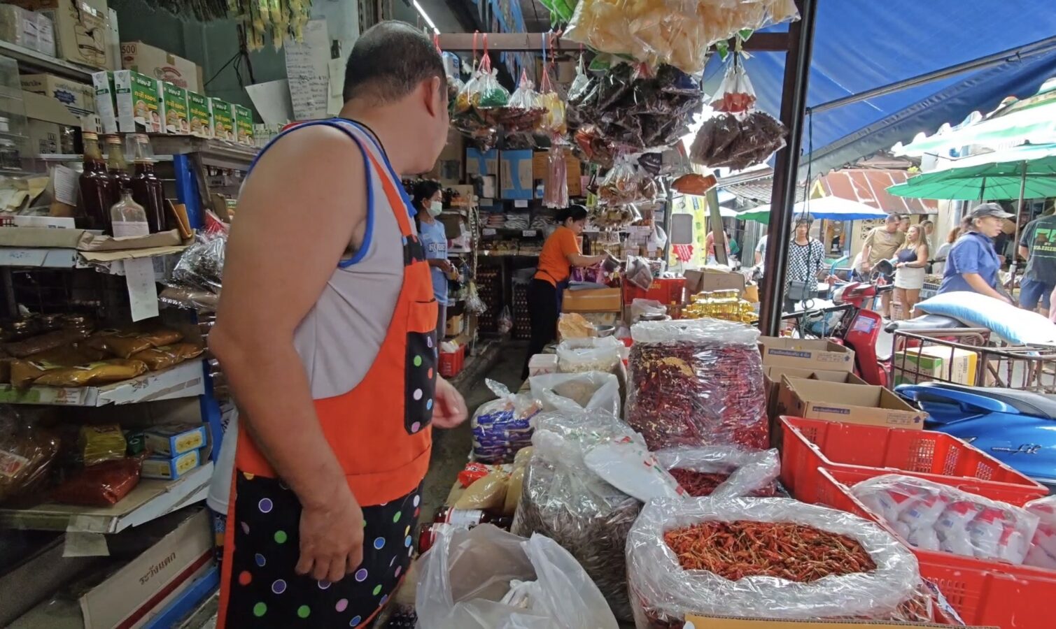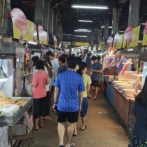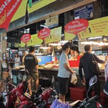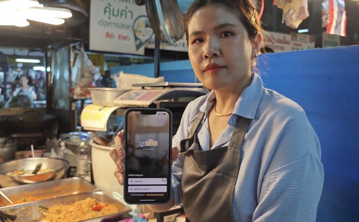 The Chiang Mai Gate Market is bustling as vendors rush to apply for the government’s Half-Half Plus programme, inputting their details into the application since earlier this morning.