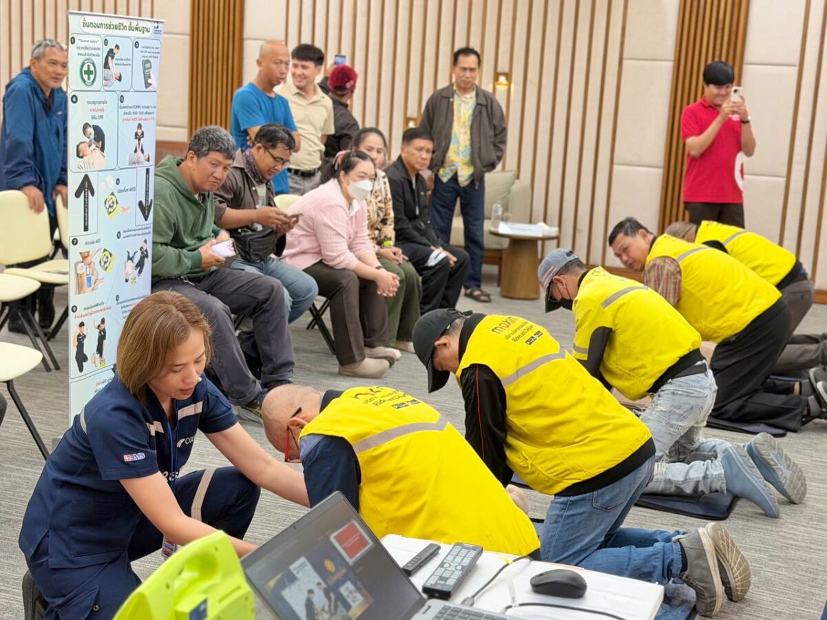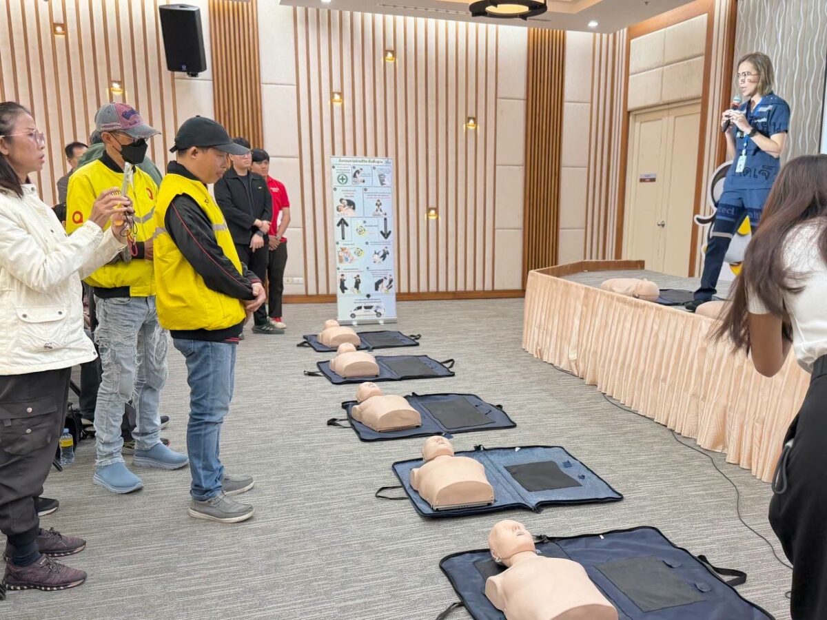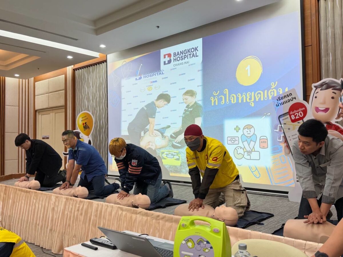A medical team of doctors, nurses, and emergency specialists from Bangkok Chiang Mai Hospital demonstrated in practice how to properly assess an emergency situation, provide basic first aid, and perform cardiopulmonary resuscitation (CPR). These are critical skills that can save lives in the minutes before an ambulance arrives.