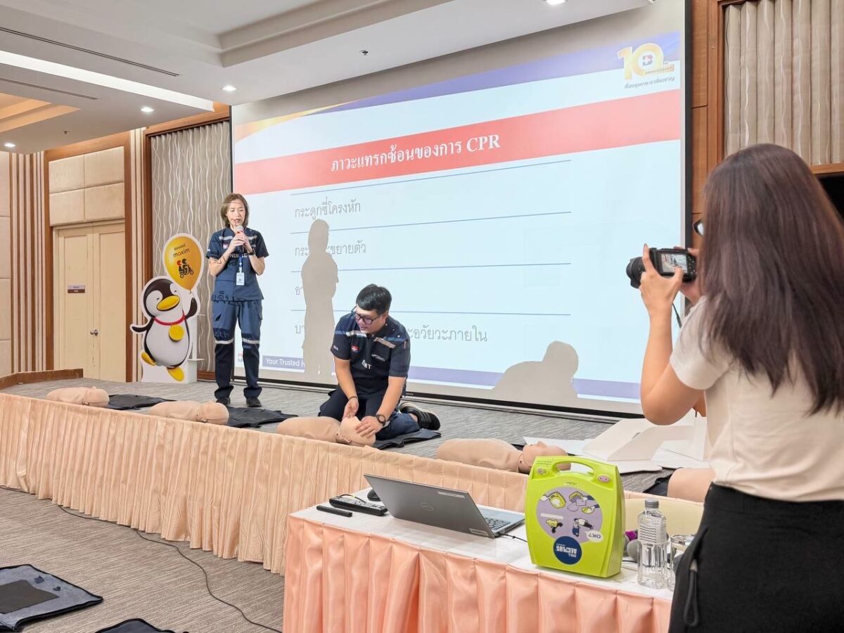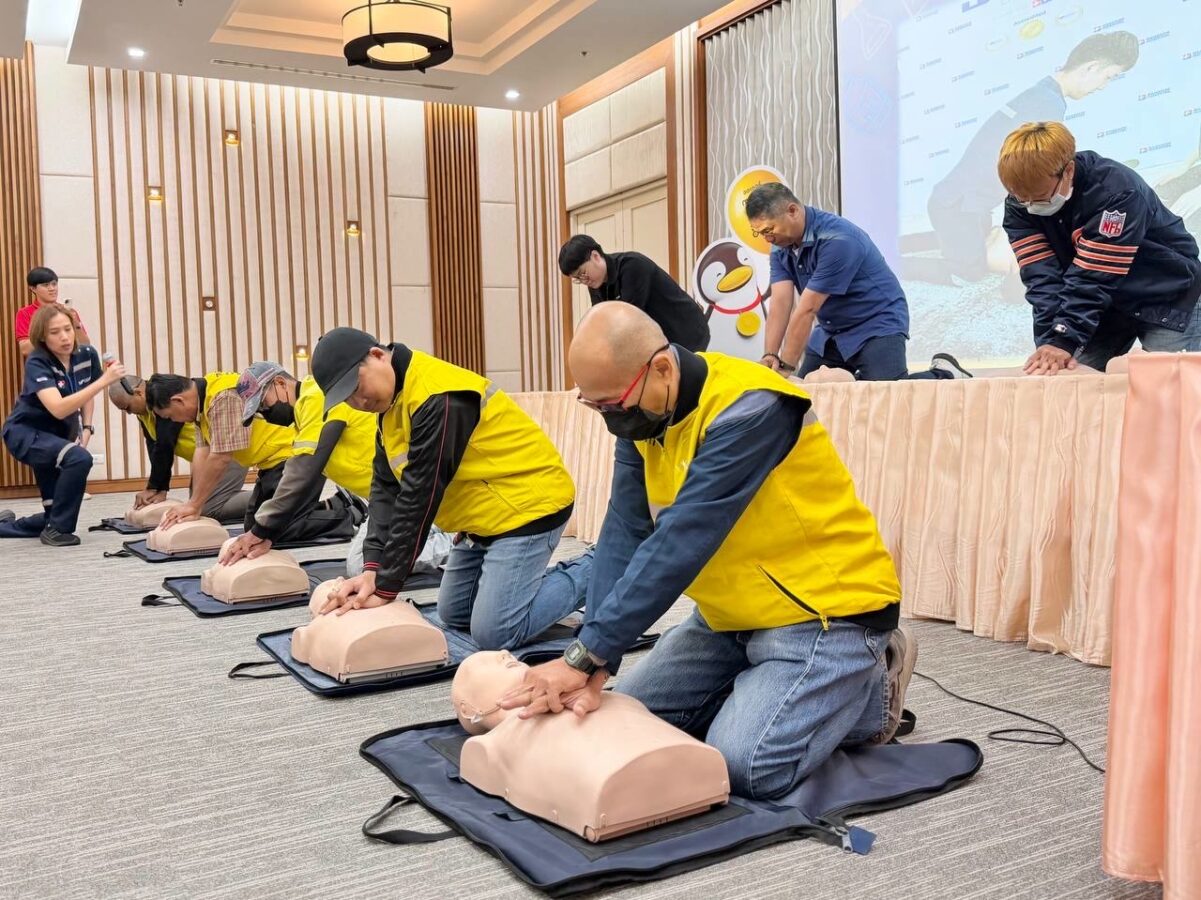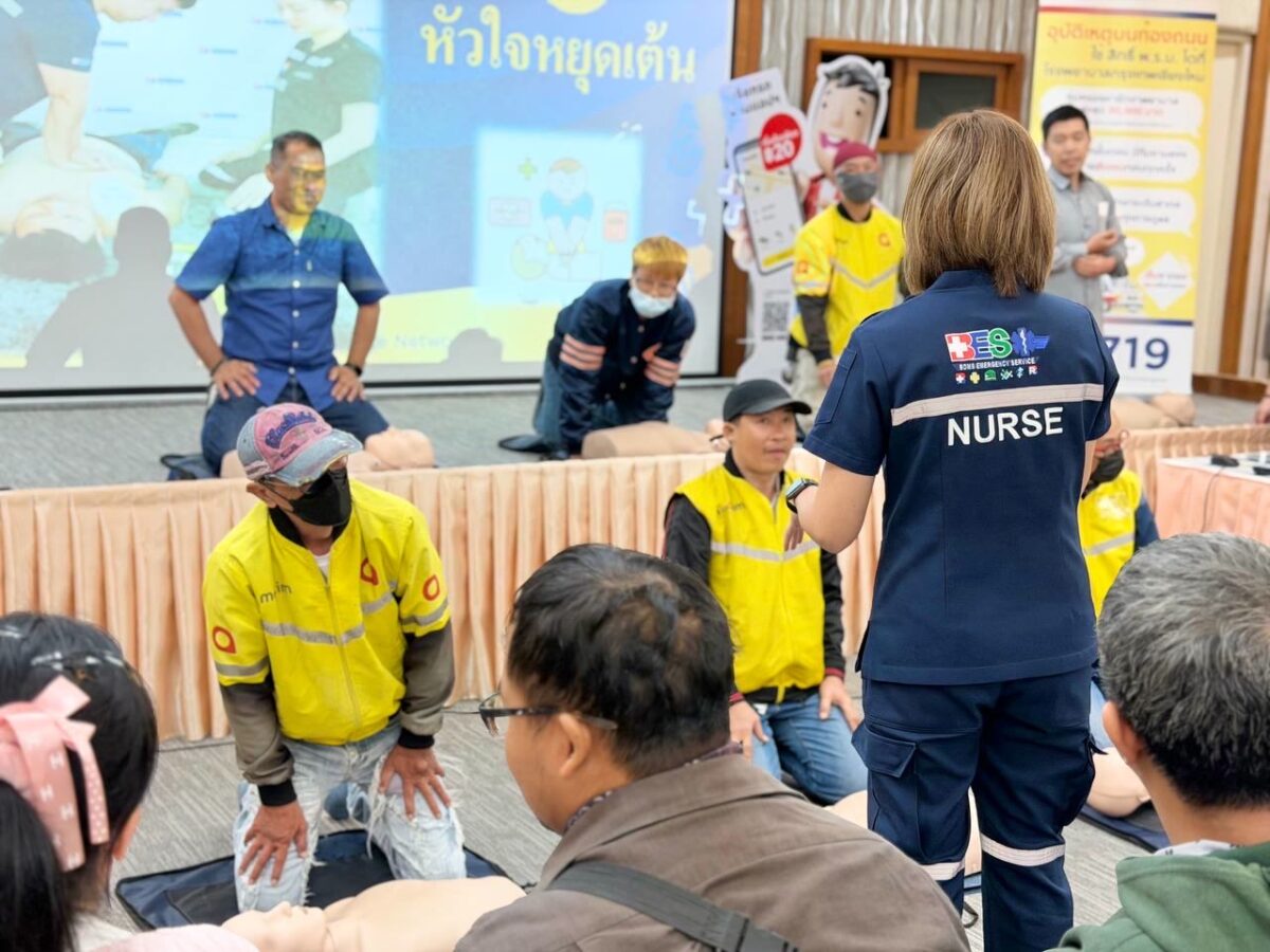 A medical team of doctors, nurses, and emergency specialists from Bangkok Chiang Mai Hospital demonstrated in practice how to properly assess an emergency situation, provide basic first aid, and perform cardiopulmonary resuscitation (CPR). These are critical skills that can save lives in the minutes before an ambulance arrives.