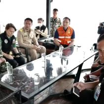Nirat Pongsitthavorn, Governor of Chiang Mai, along with forestry, rescue and other government officials visited Sri Lanna National Park in Mae Taeng District today to oversee efforts against a wildfire which is spreading in many directions.