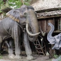 Baan Chang Nak in Sankampang has recently been opened in homage of National Artist Petch Wiriya, 67, a woodcarver, who is featuring hundreds of thousands of his carved elephants in this new museum.