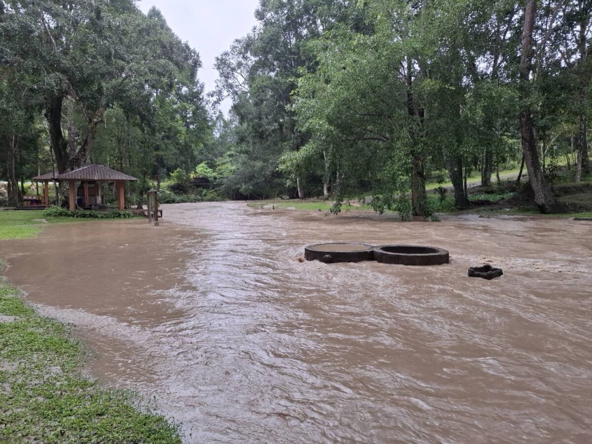Following continuous heavy rainfall over the past few days, water levels breached the banks of the Ob Khan river at the Ob Khan National Park around 4am this morning.