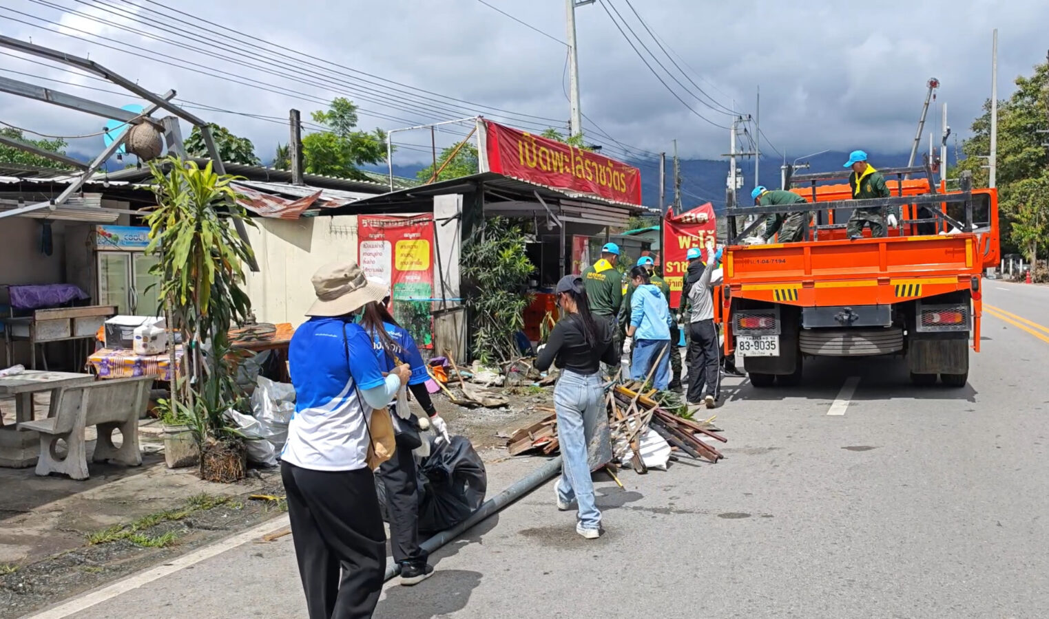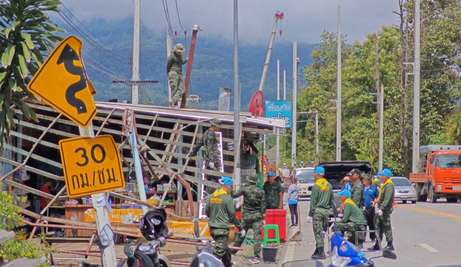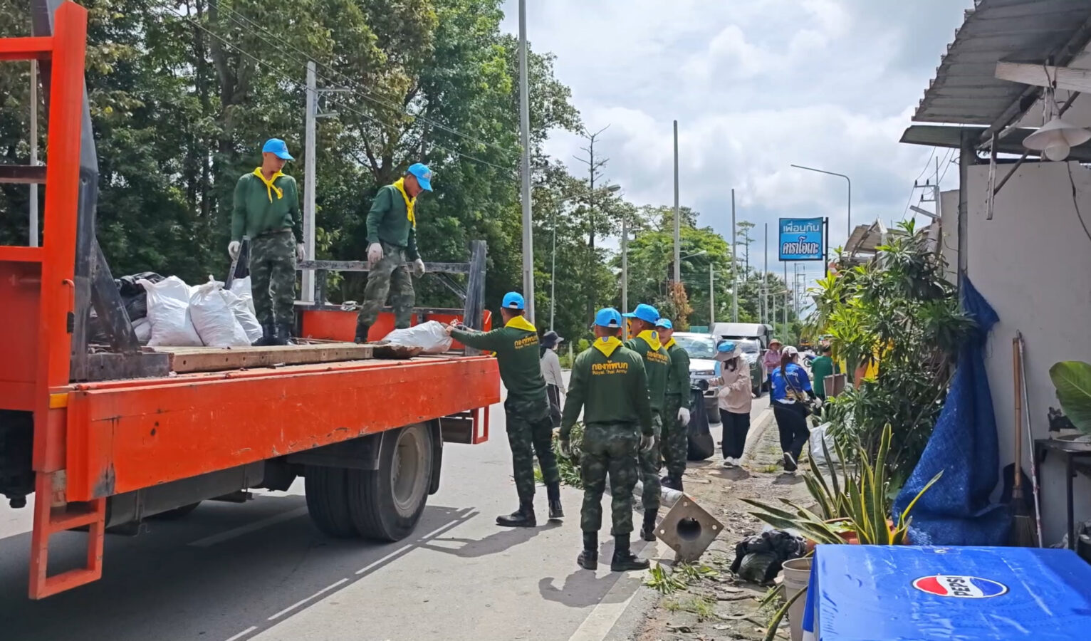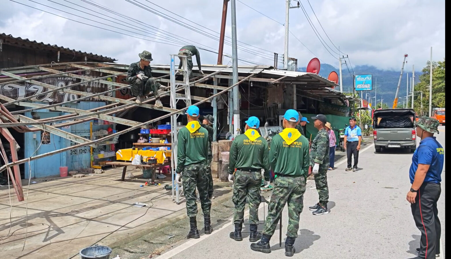 Soldiers from the 7th Infantry Division, along with officials from the Chang Phueak Subdistrict Administrative Organization, went to the area to help villagers clean up the ruins of houses and shops damaged by the pickup truck accident on September 9th. The villagers had not yet received any compensation.