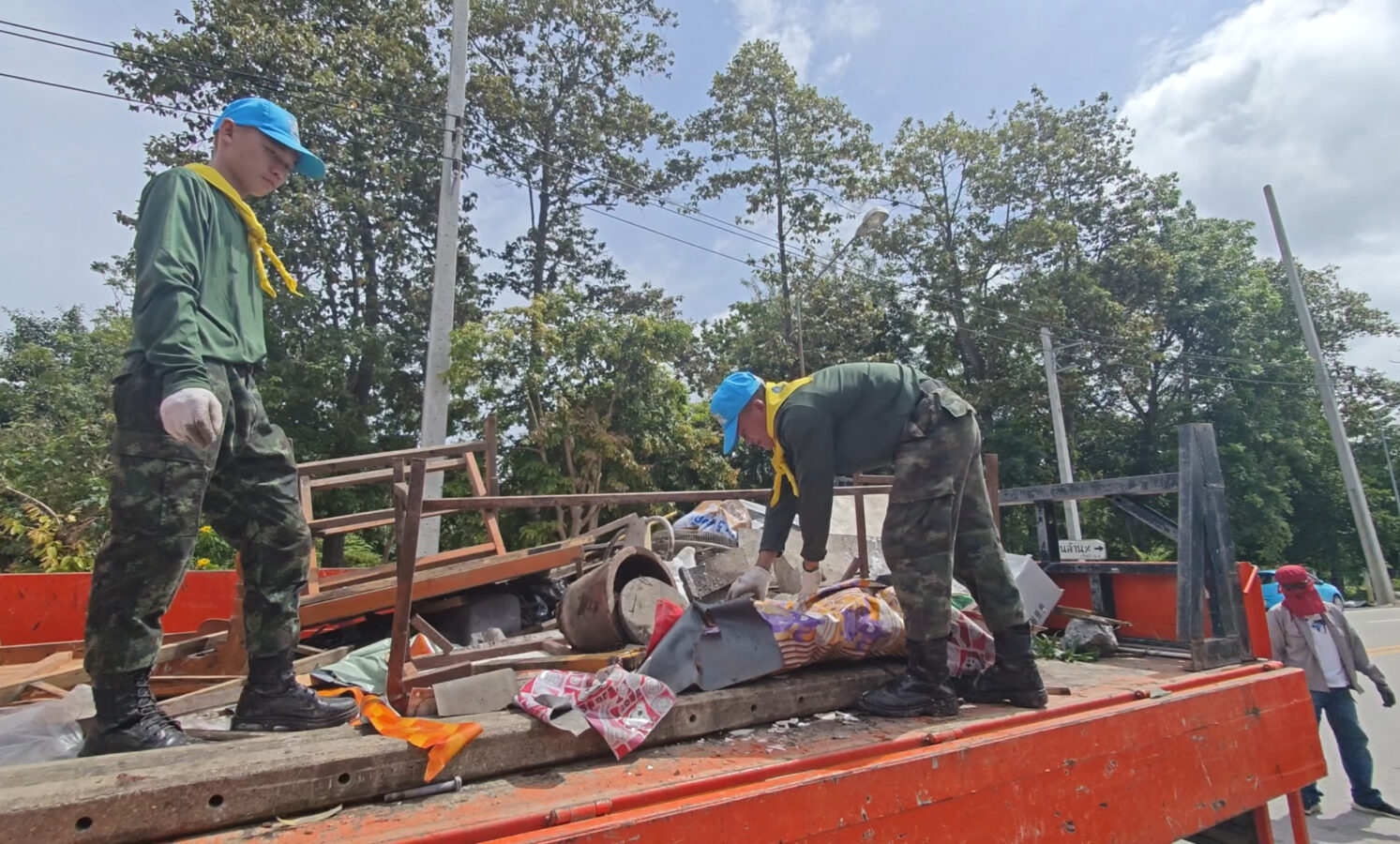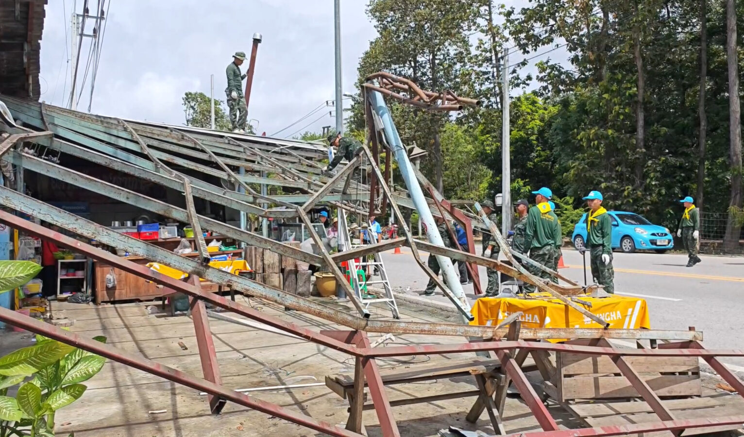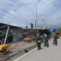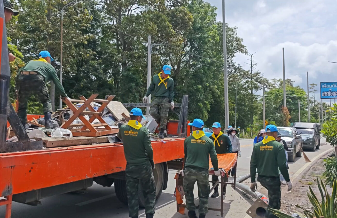 Soldiers from the 7th Infantry Division, along with officials from the Chang Phueak Subdistrict Administrative Organization, went to the area to help villagers clean up the ruins of houses and shops damaged by the pickup truck accident on September 9th. The villagers had not yet received any compensation.