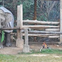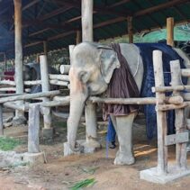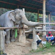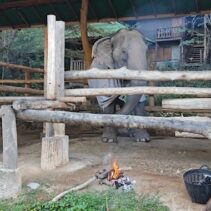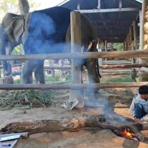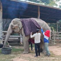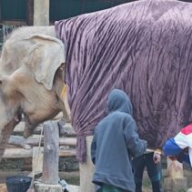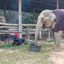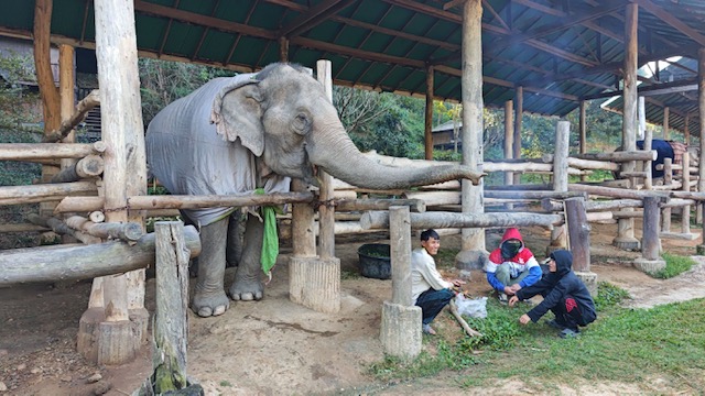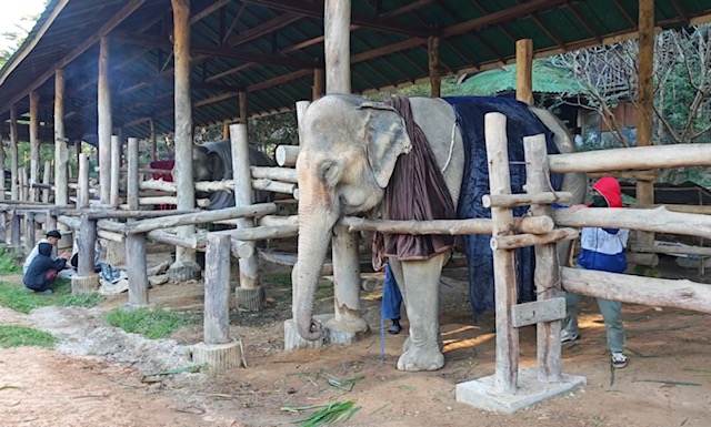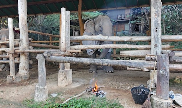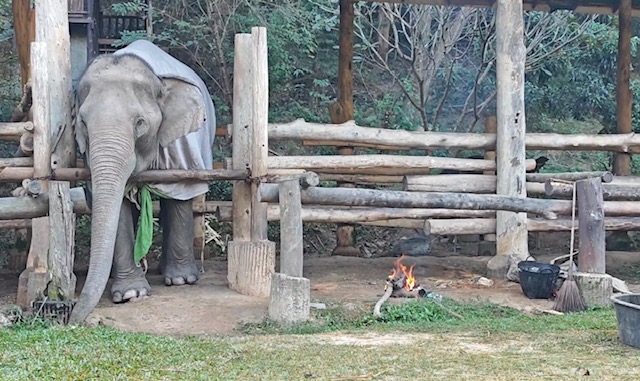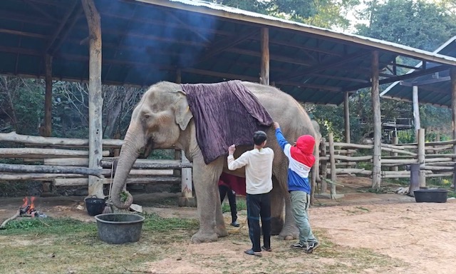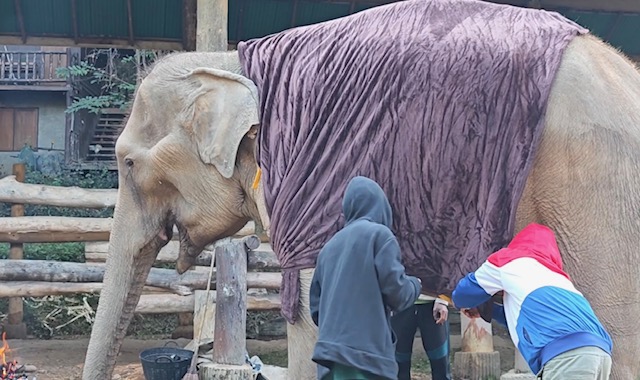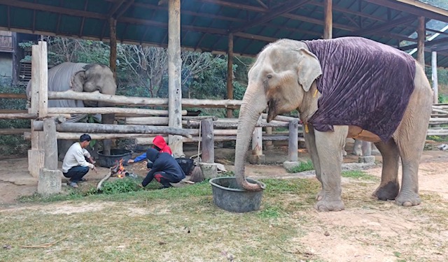 Mae Sa Elephant, photographed here, is among numerous elephants camps across Chiang Mai now having to find blankets and light fires close to their elderly and infirm elephants, as temperatures drop to single digits this week.