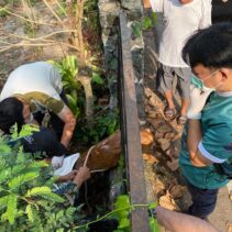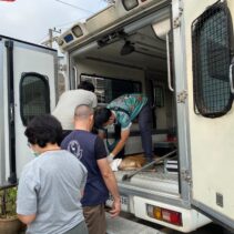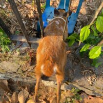 It took rescue service staff an hour to finally release the deer, which they suspect came down from Doi Suthep-Pui National Park and got confused and lost.