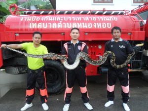 Large snake caught in Chiang Mai 26 September 2014 Python was trying to get into coop housing fighting Large snake caught in Chiang Mai
