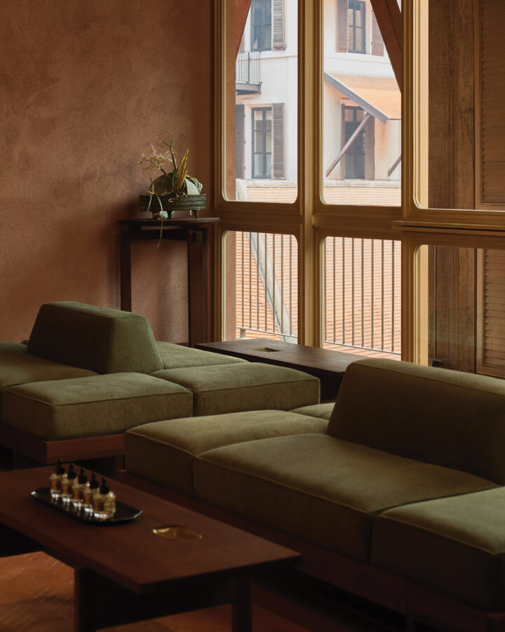 The interior design draws inspiration from Lanna craftsmanship, incorporating terracotta tones, celadon ceramics, and handcrafted textures. These elements symbolize warmth, grounding, and a deep connection to nature. Traditional materials are reinterpreted through a modern contemporary lens, creating a refined and distinctive environment that reflects PAÑPURI’s design identity.