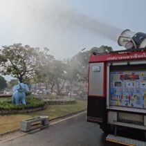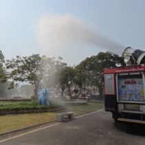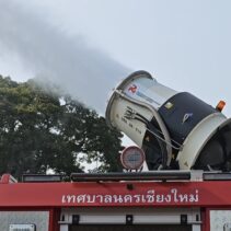 Chiang Mai Municipality is using water trucks and spraying a fine mist of water around the city and Chang Phuak Gate to reduce the toxic dust and heat.