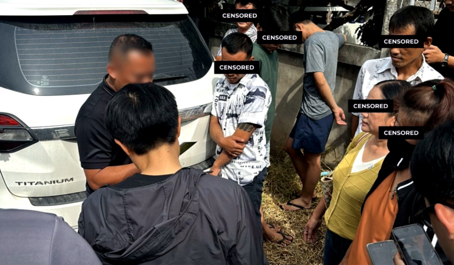 Officers tracked the group to a bank in Wiang Nong Long Subdistrict in Lamphun. They observed the suspects working together to withdraw cash at the bank counter and noticed that the suspects in a nearby vehicle were coordinating and giving instructions. A total of seven people were involved.